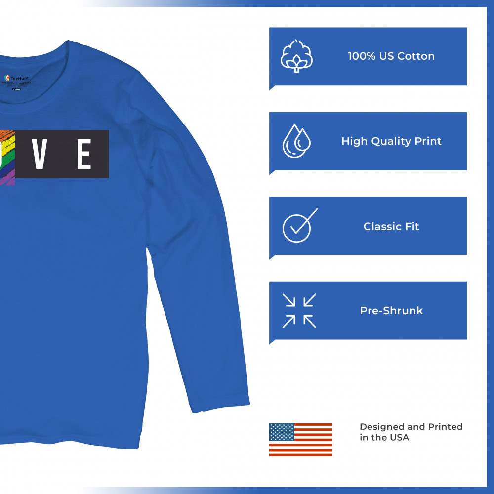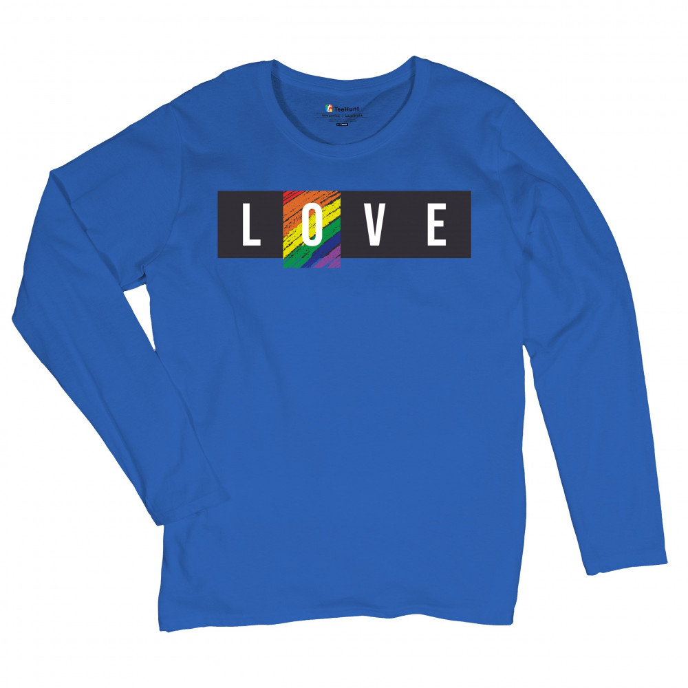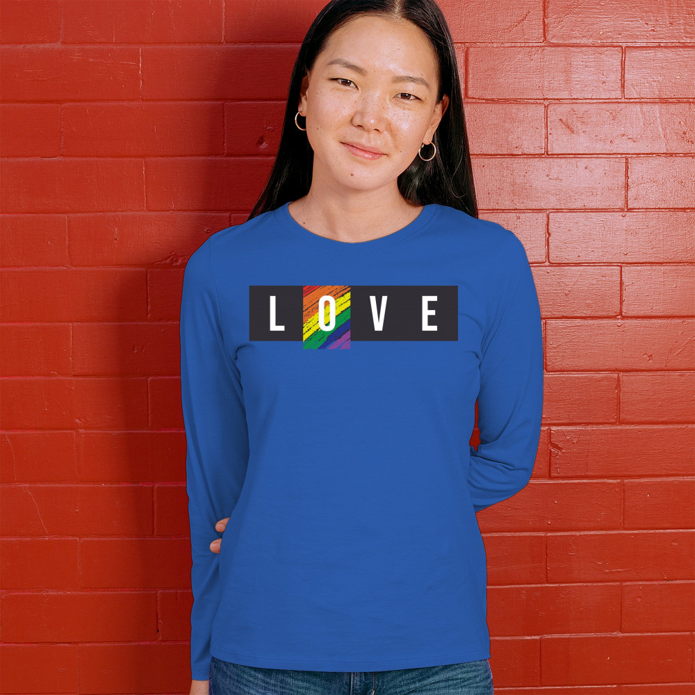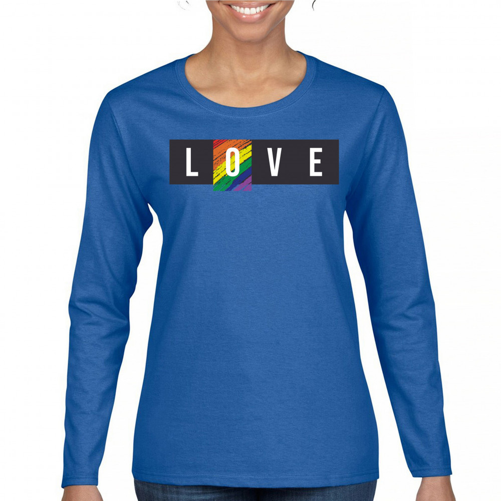 LOVE women's long sleeve t-shirt gay pride rainbow lgbtq tolerance equality royal blue
