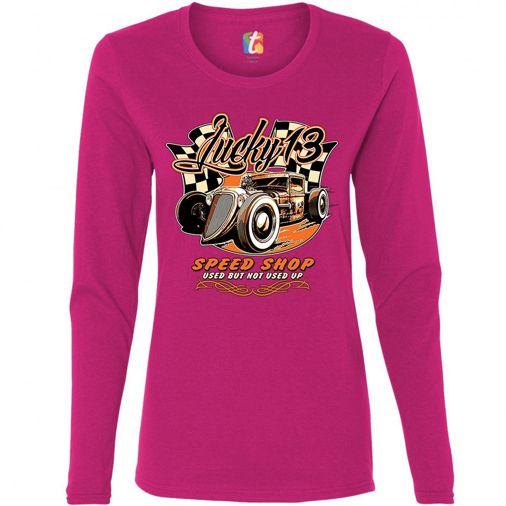 LUCKY 13 SPEED SHOP women's long sleeve t-shirt rat rod route 66 racing car pink