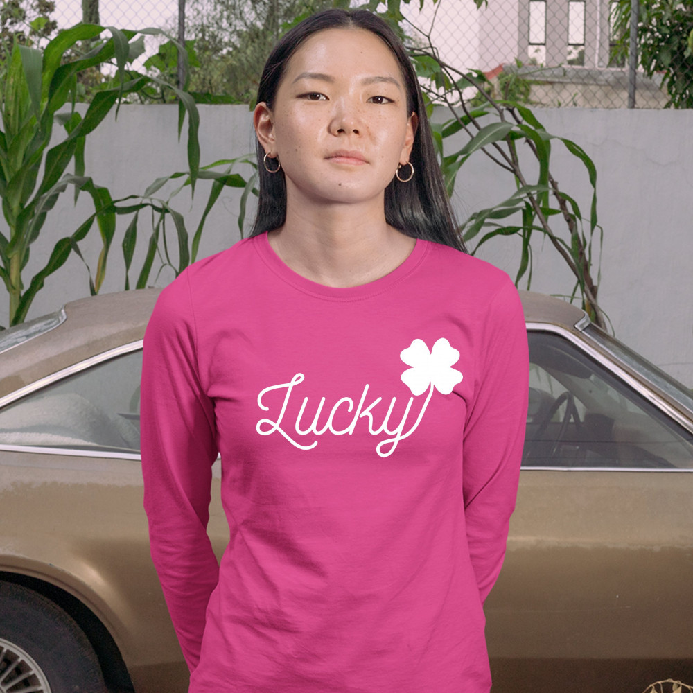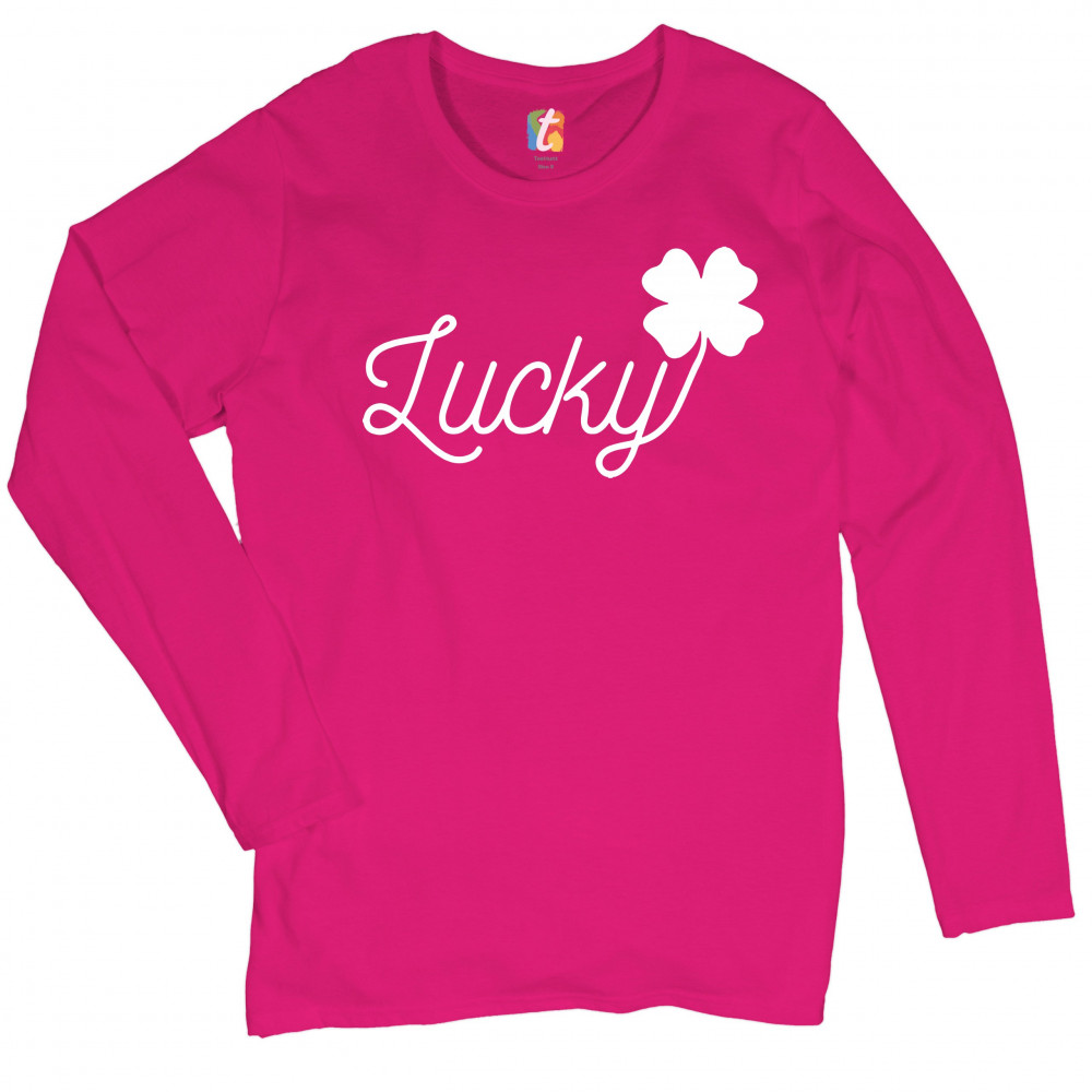 LUCKY SHAMROCK women's long sleeve t-shirt st. patrick's day funny holiday pink