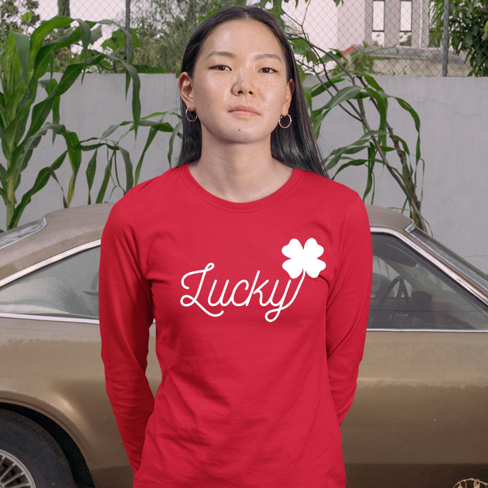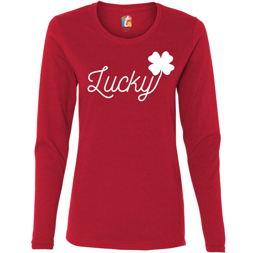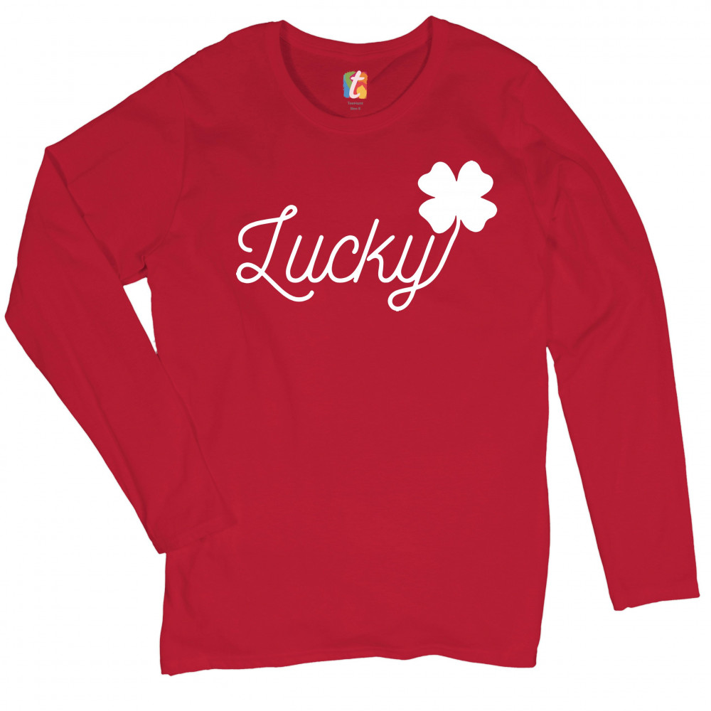 LUCKY SHAMROCK women's long sleeve t-shirt st. patrick's day funny holiday red