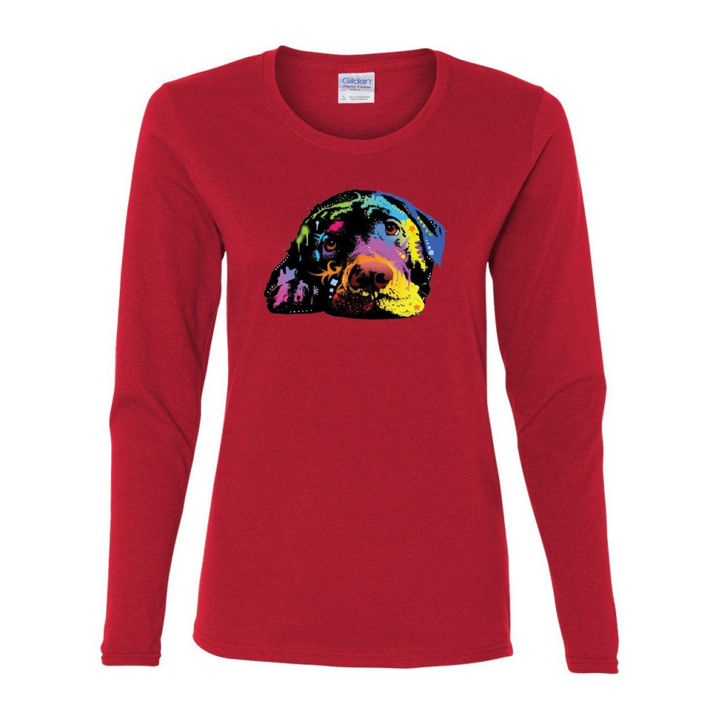 LYING LABRADOR RETRIEVER women's long sleeve tee dean russo neon lab pet lovers red