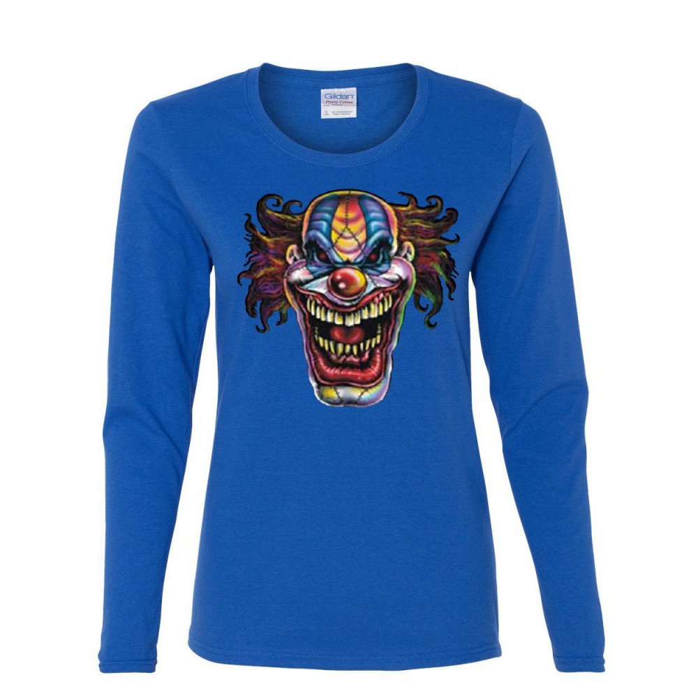 MAD EVIL CLOWN FACE long sleeve t-shirt scary horror insane joker royal blue