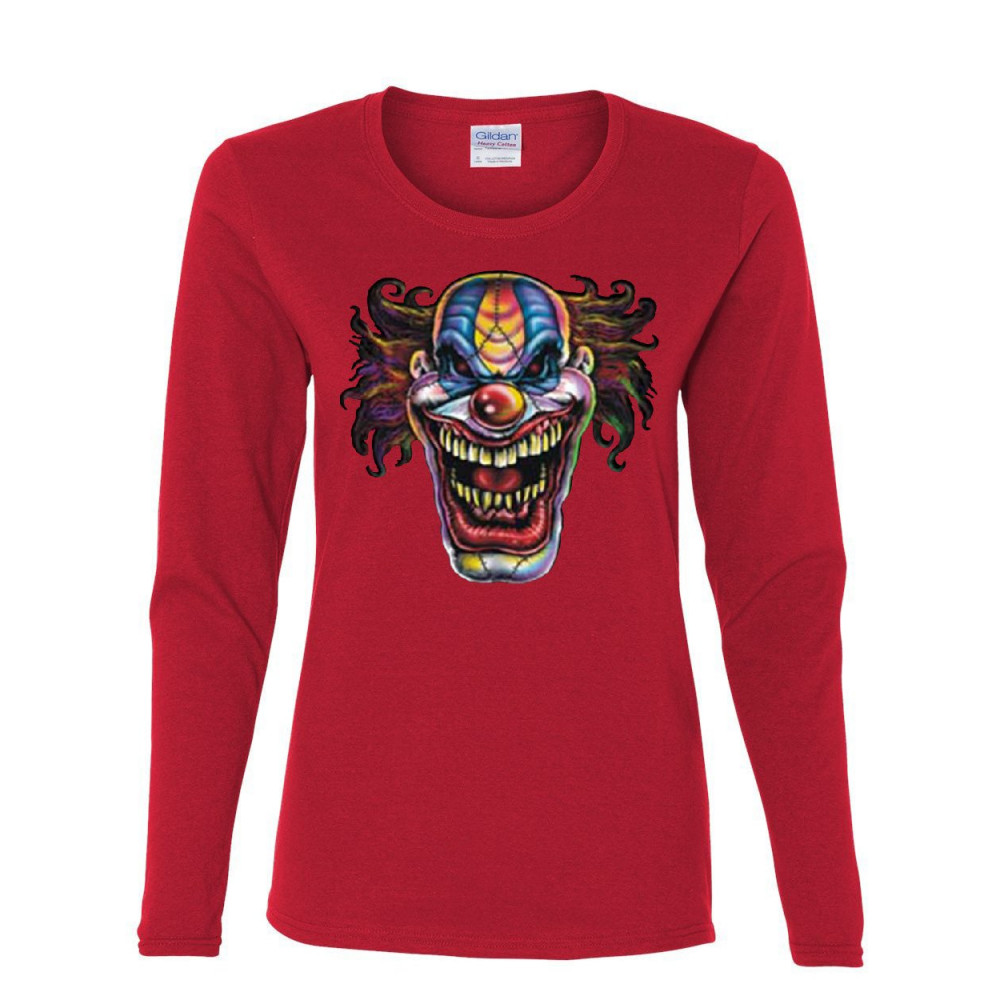 MAD EVIL CLOWN FACE long sleeve t-shirt scary horror insane joker red