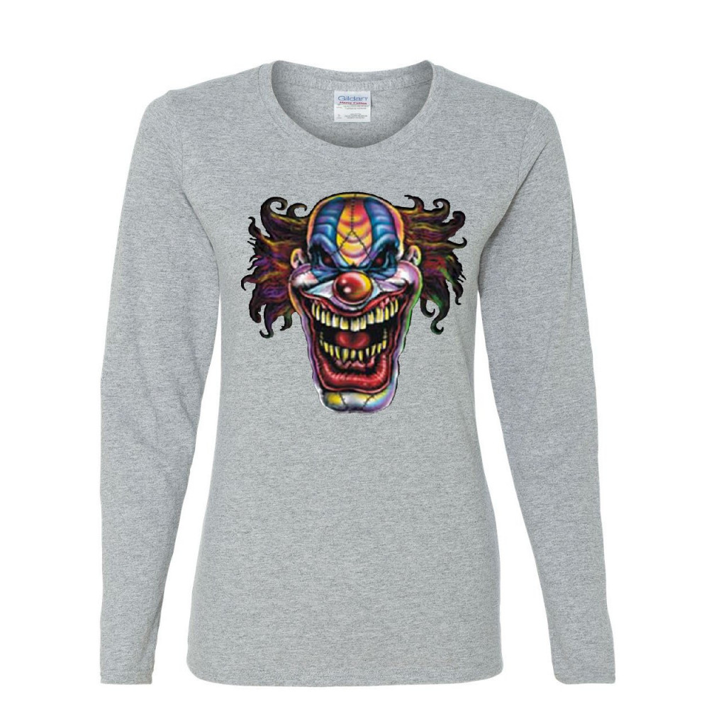 MAD EVIL CLOWN FACE long sleeve t-shirt scary horror insane joker gray