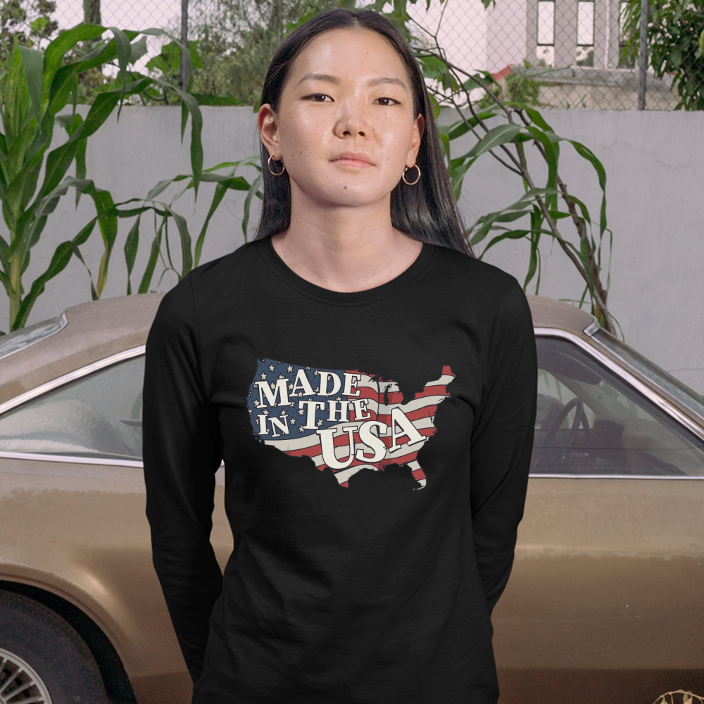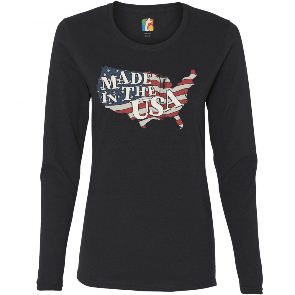 MADE IN THE USA women's long sleeve t-shirt american flag independence day black