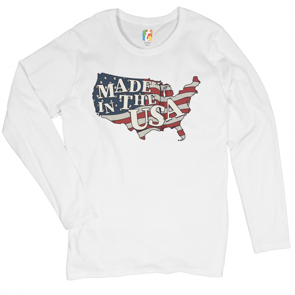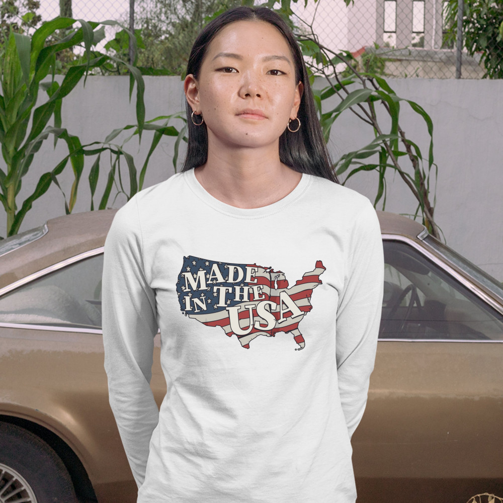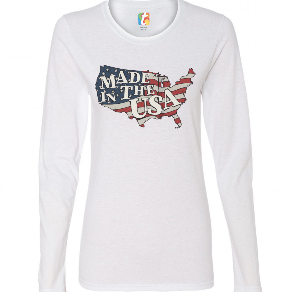 MADE IN THE USA women's long sleeve t-shirt american flag independence day white