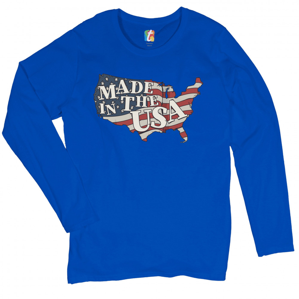 MADE IN THE USA women's long sleeve t-shirt american flag independence day royal blue