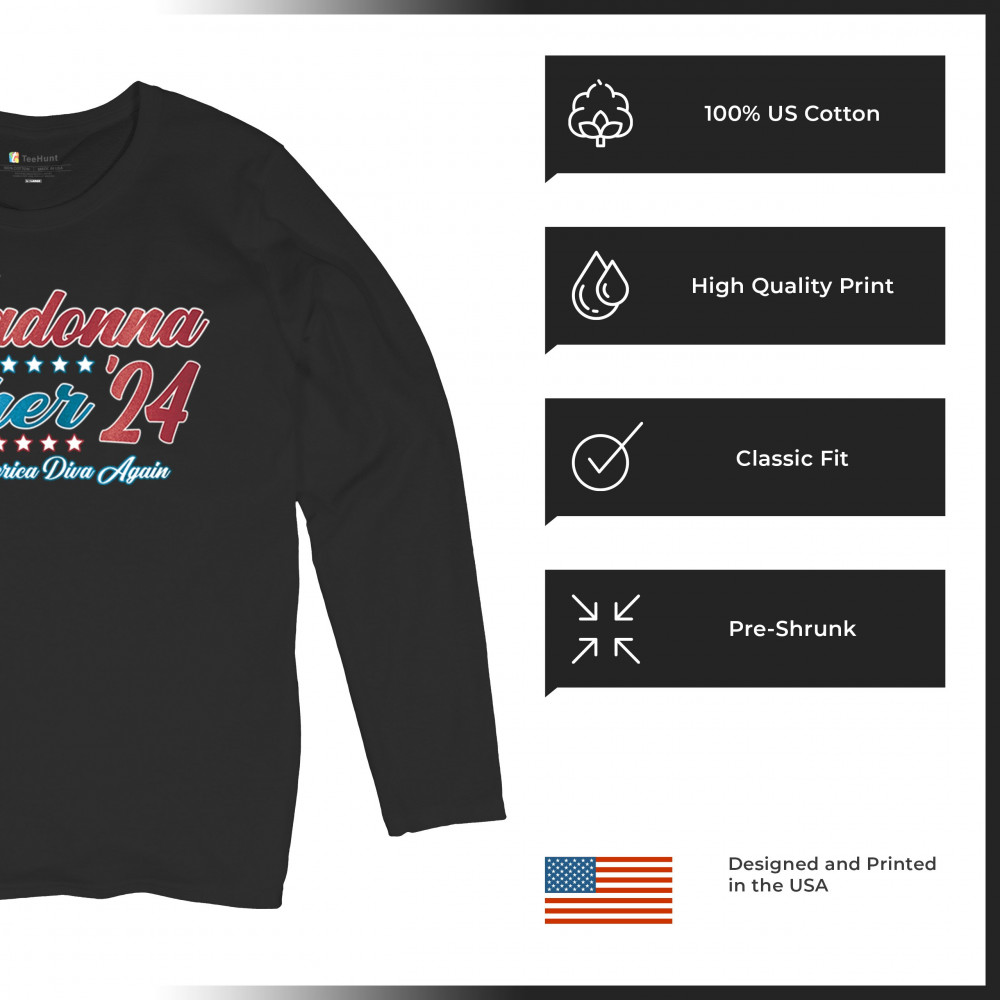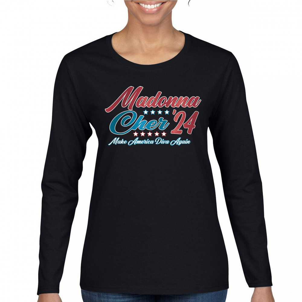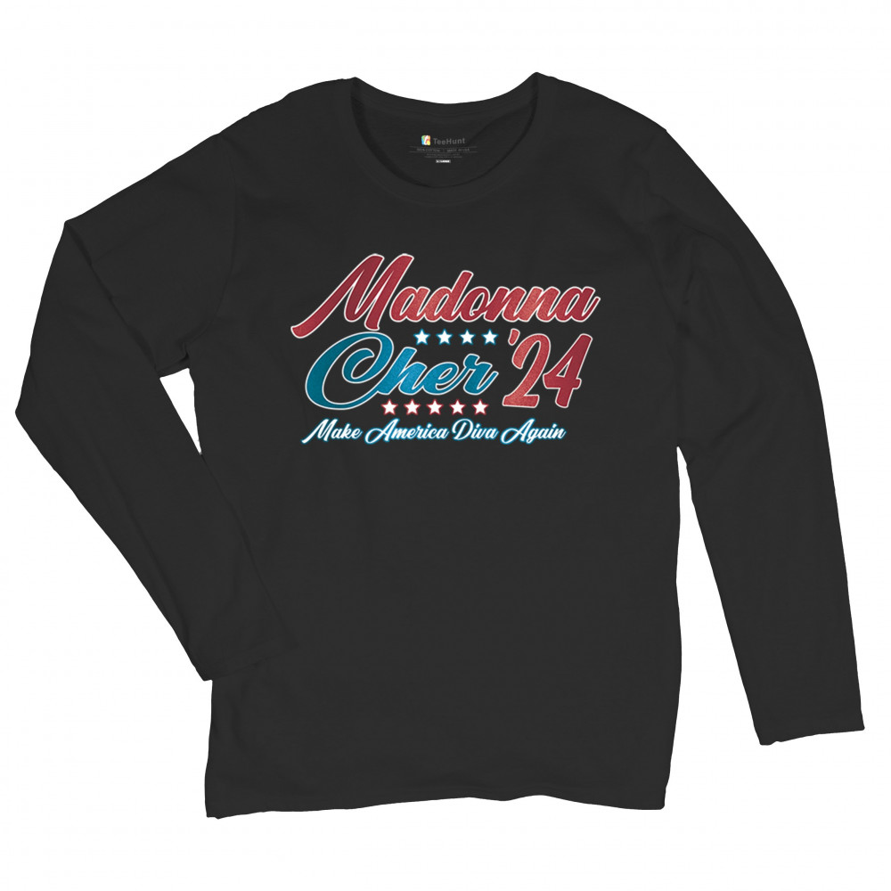 MADONNA CHER 2024 MAKE AMERICA DIVA AGAIN women's long sleeve t-shirt pop icon black