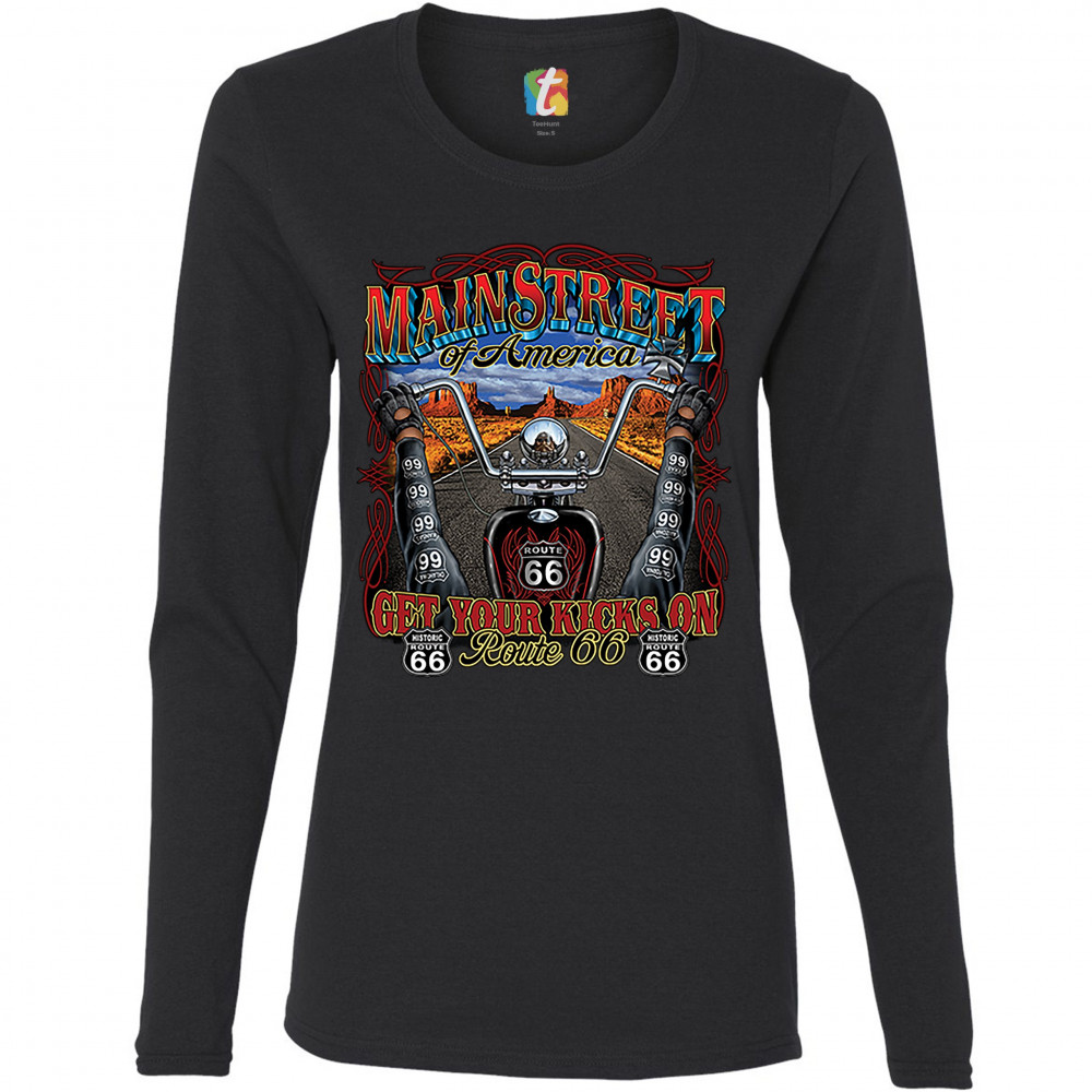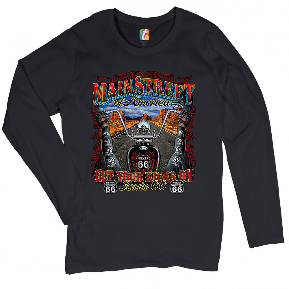 MAIN STREET OF AMERICA women's long sleeve t-shirt get your kicks on route 66 black