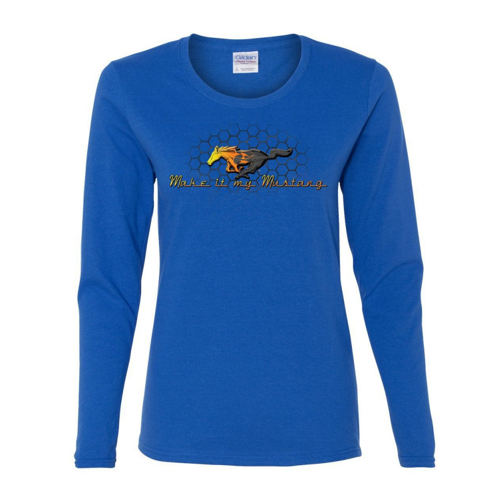 MAKE IT MY MUSTANG women's long sleeve tee honeycomb american classic fire horse royal blue