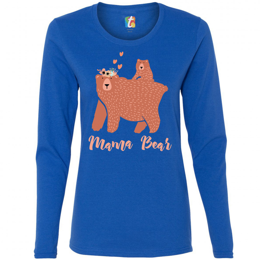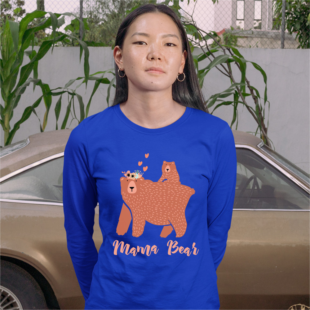 MAMA BEAR WITH A CUB women's long sleeve t-shirt cute mother's day savage mom royal blue