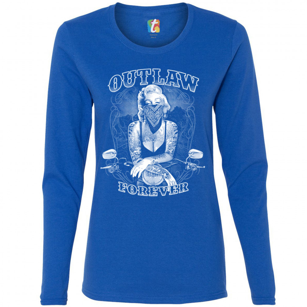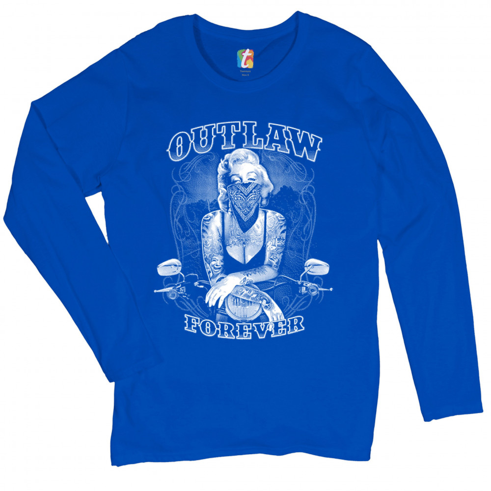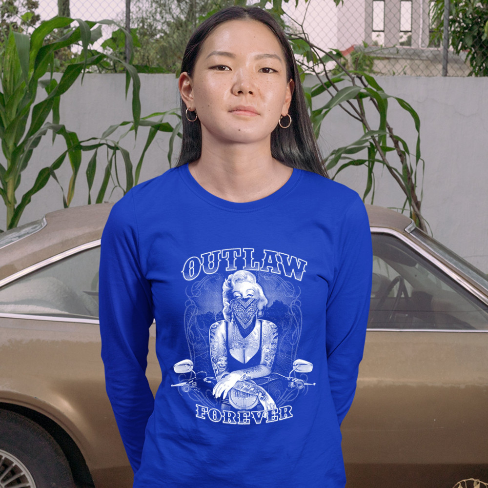 MARILYN MONROE OUTLAW FOREVER women's long sleeve t-shirt biker live to ride royal blue
