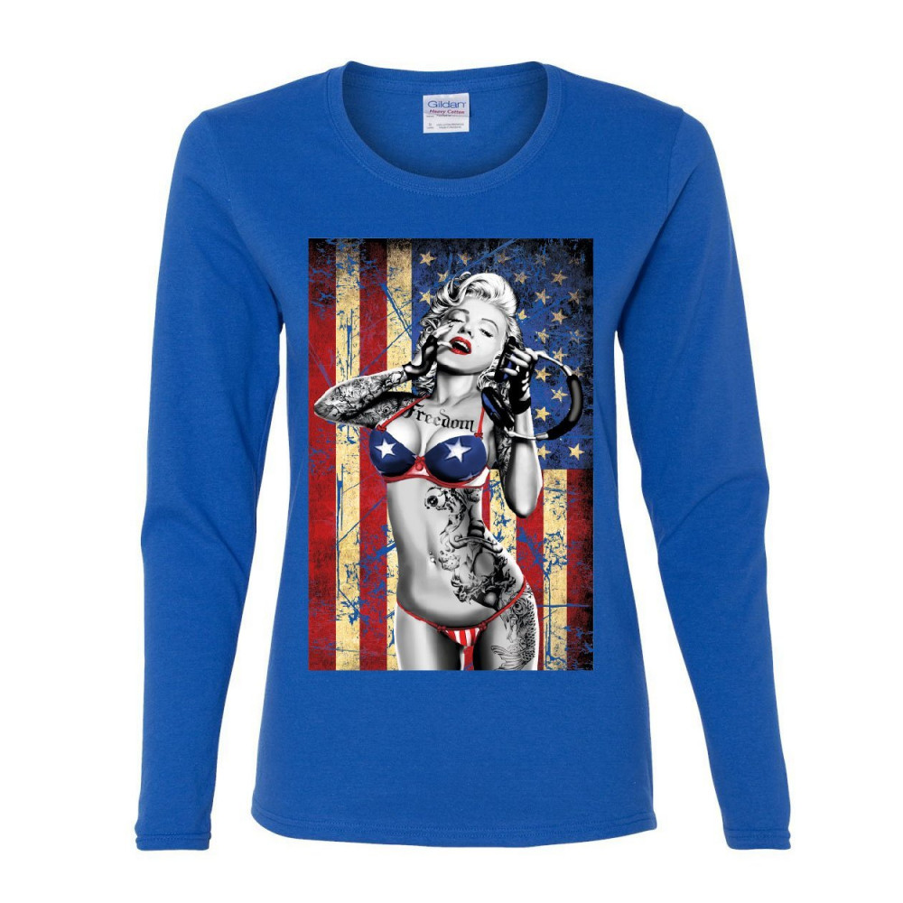 SEXY MARILYN MONROE US FLAG marilyn monroe us flag women's long sleeve tee freedom sexy girl tattoos gangsta royal blue