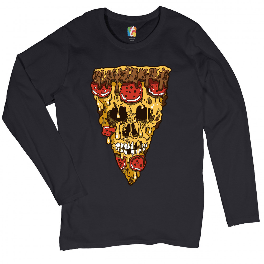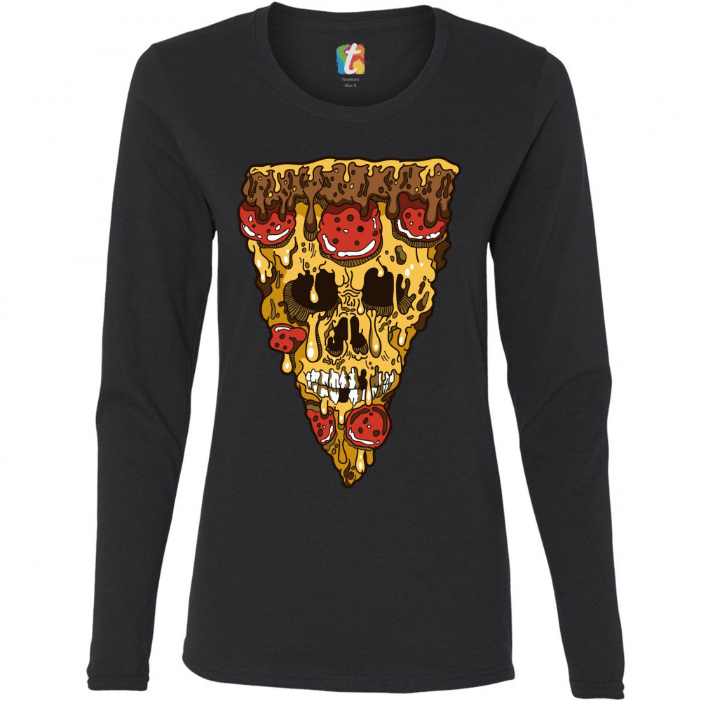 MELTING PIZZA ZOMBIE FACE women's long sleeve t-shirt horror halloween undead black