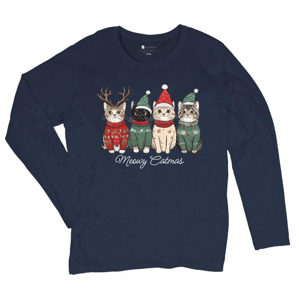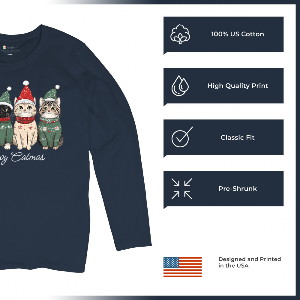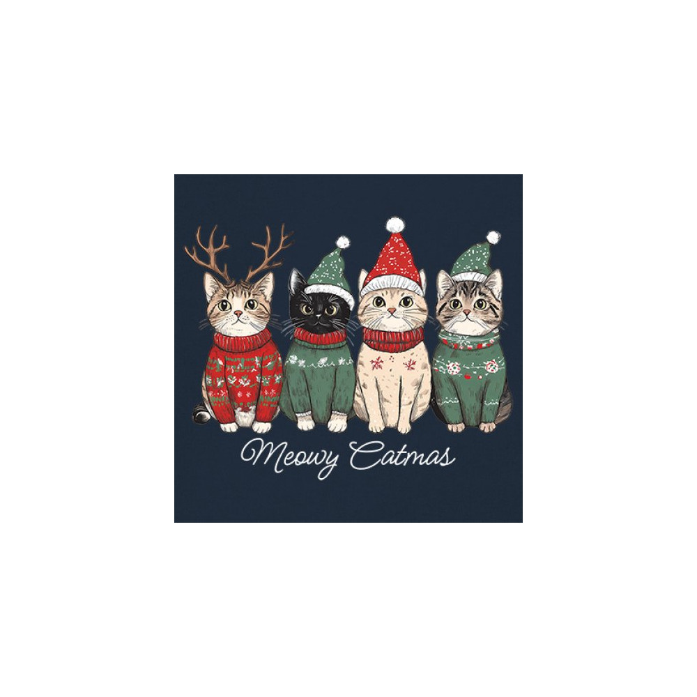 Cute Meowy Catmas design with festive kittens, perfect for cat lovers wanting a cozy holiday graphic and fun Christmas pet theme.