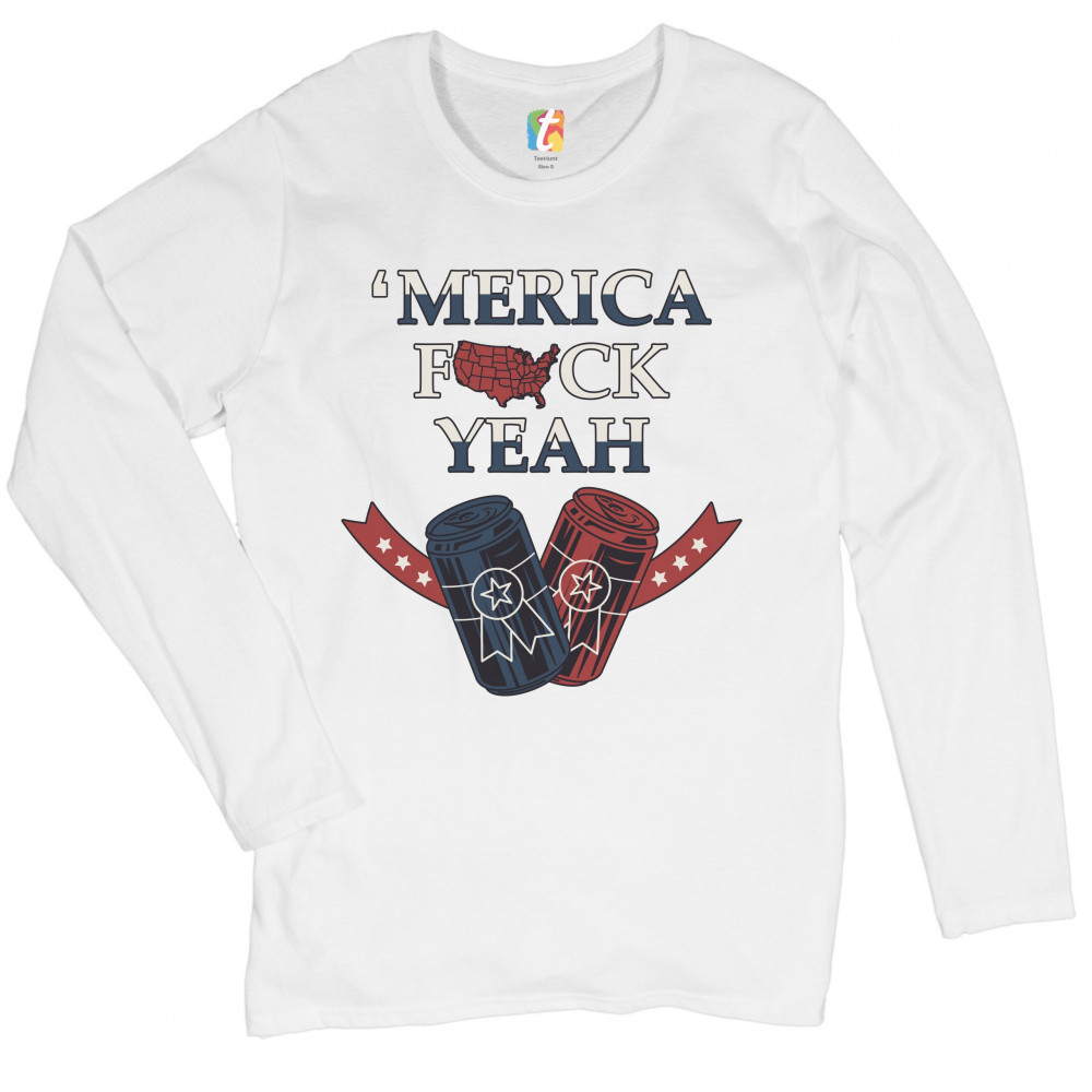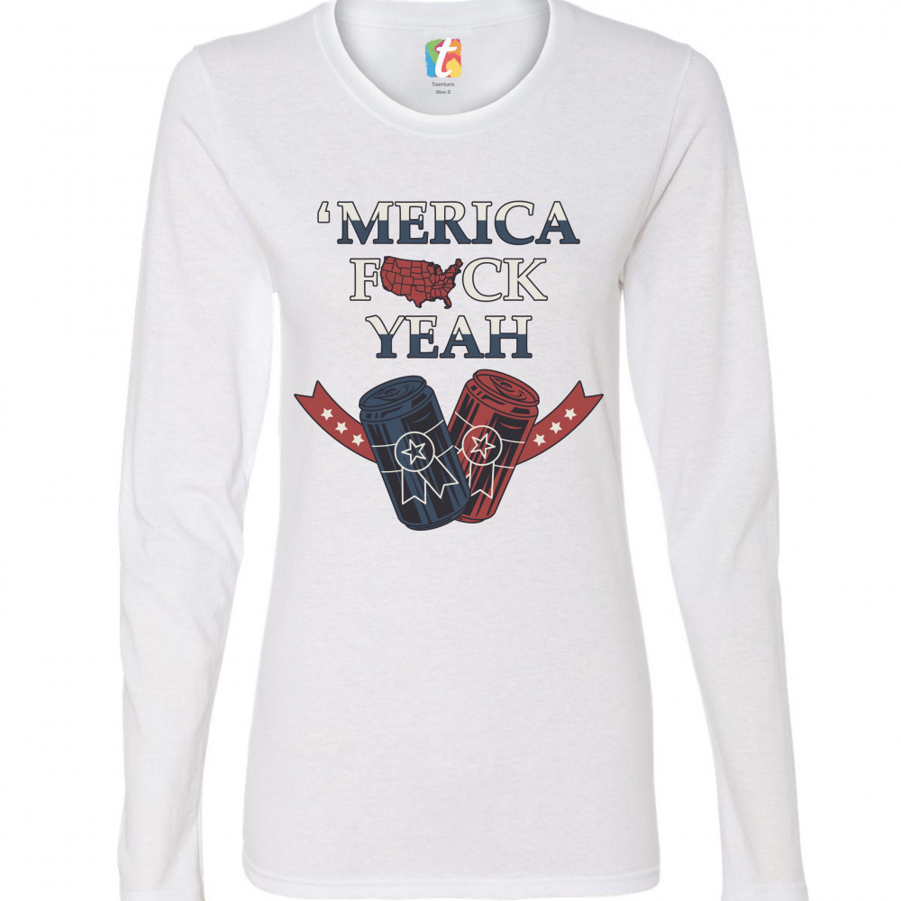 MERICA F*CK YEAH women's long sleeve t-shirt patriotic american pride beer white