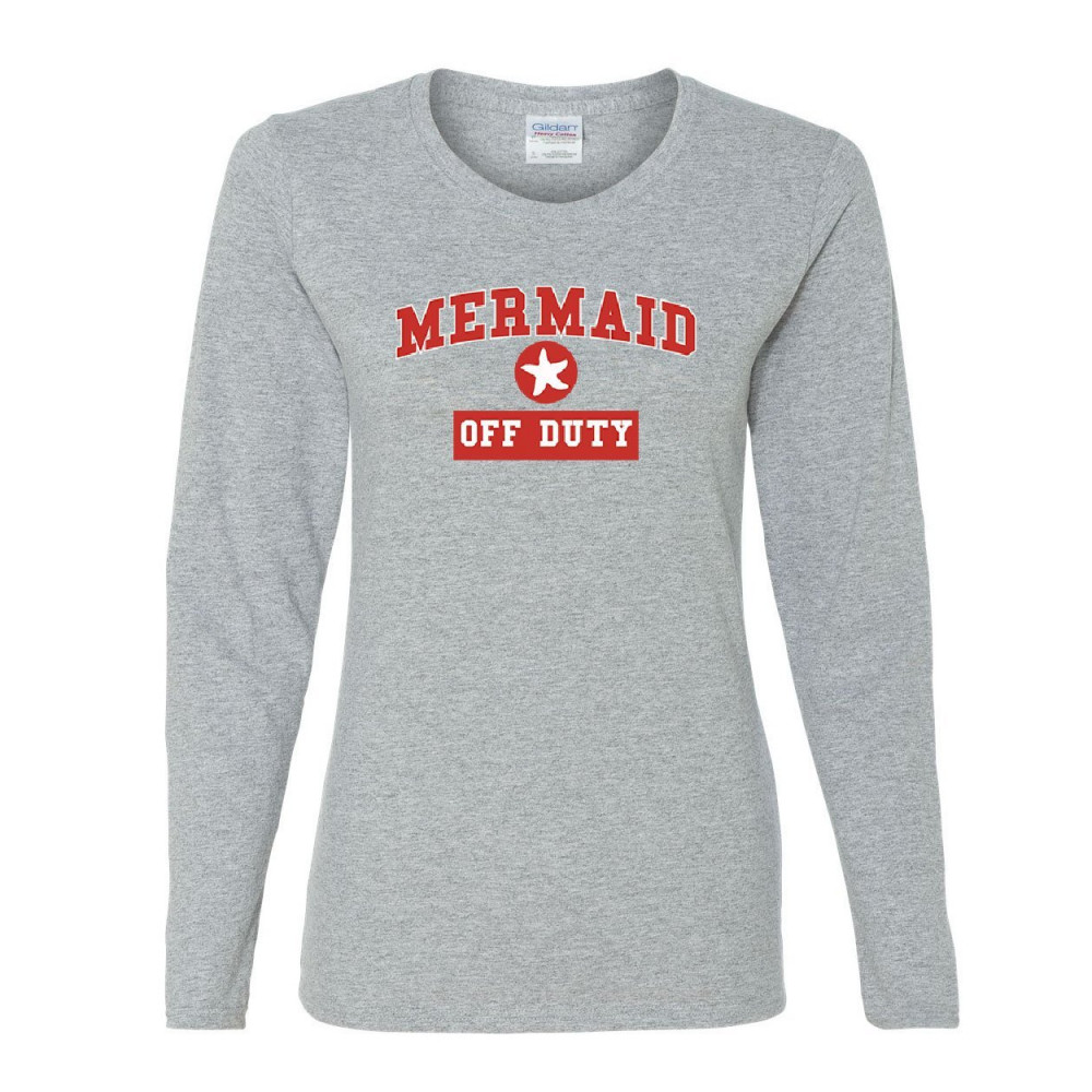 MERMAID OFF DUTY women's long sleeve tee funny cute holiday vacation ocean beach gray