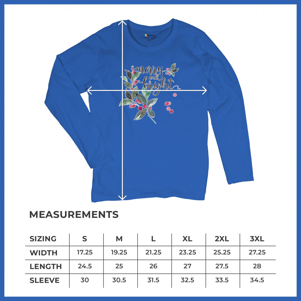 MERRY AND BRIGHT CUTE CHRISTMAS women's long sleeve t-shirt jolly santa xmas royal blue