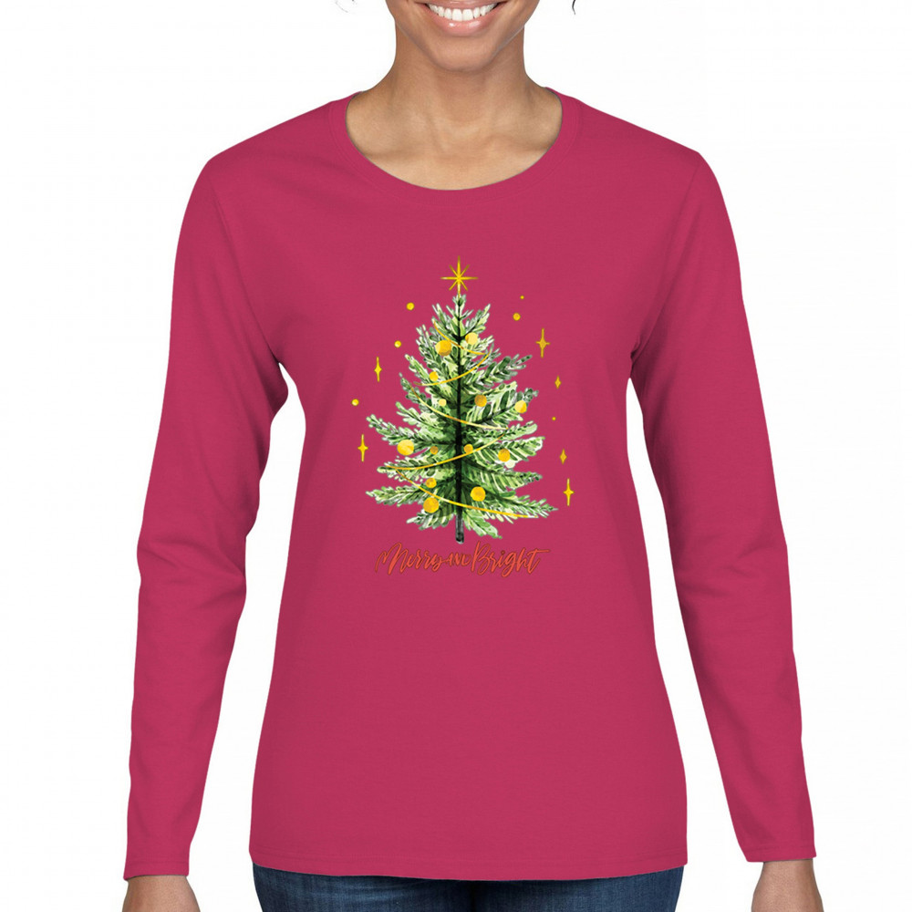 Festive “Merry and Bright†shirt featuring a joyful Christmas tree. Perfect for holiday gatherings, office parties, or Secret Santa gifts.