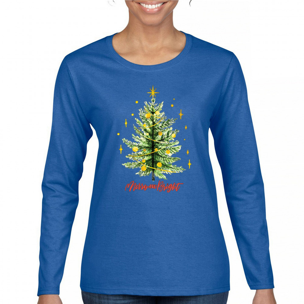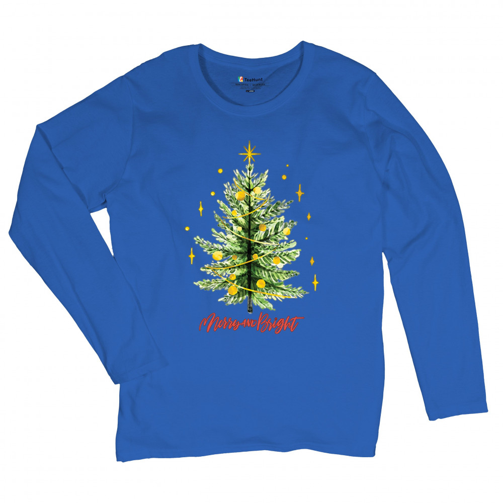Festive “Merry and Bright†shirt featuring a joyful Christmas tree. Perfect for holiday gatherings, office parties, or Secret Santa gifts.