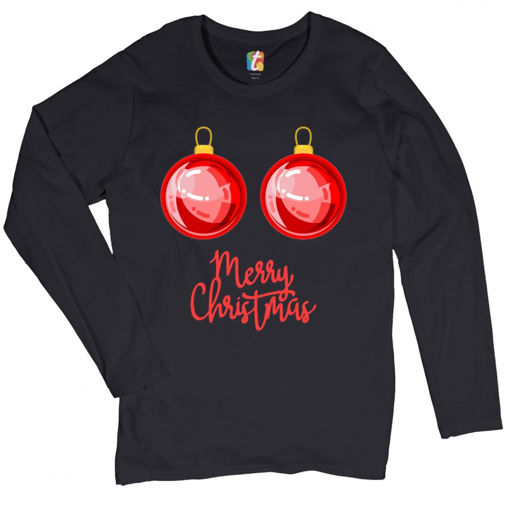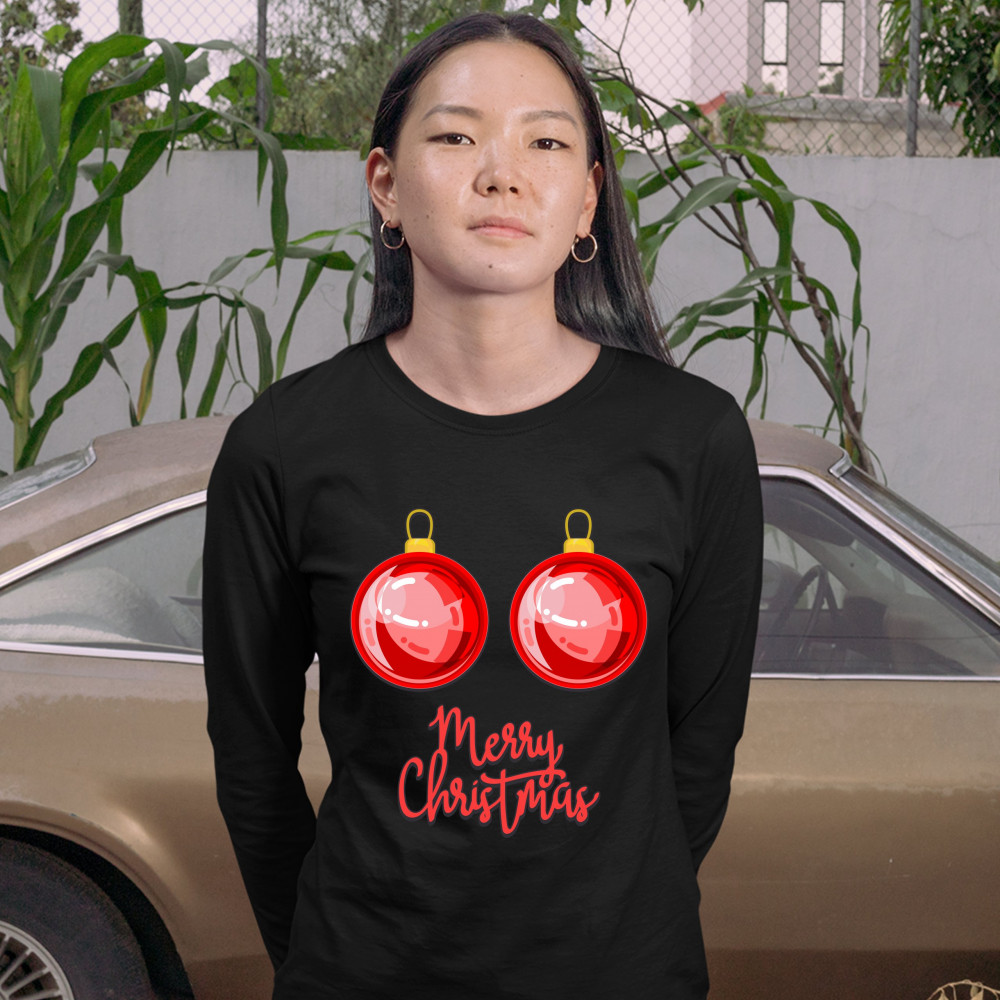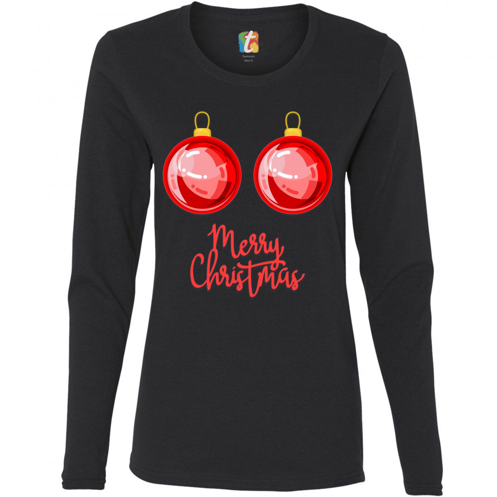 MERRY CHRISTMAS BOOBS women's long sleeve t-shirt naughty or nice funny tits black