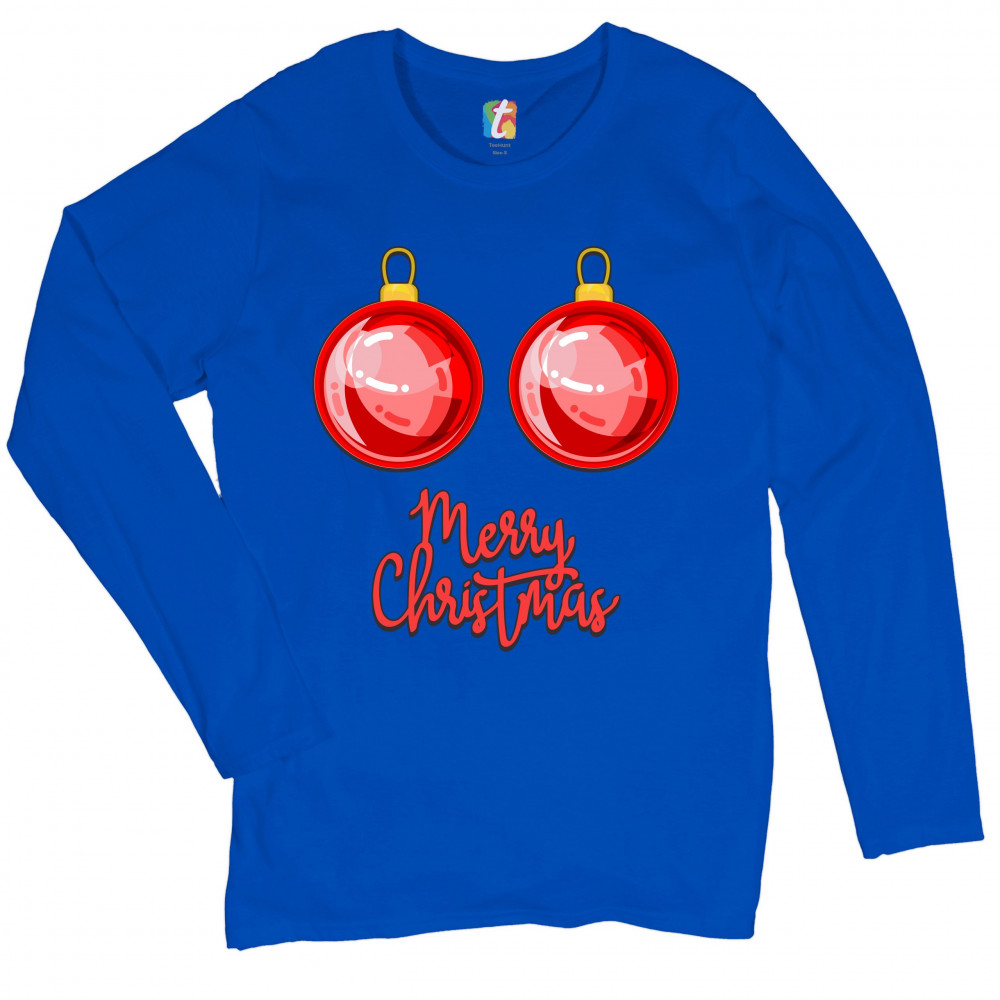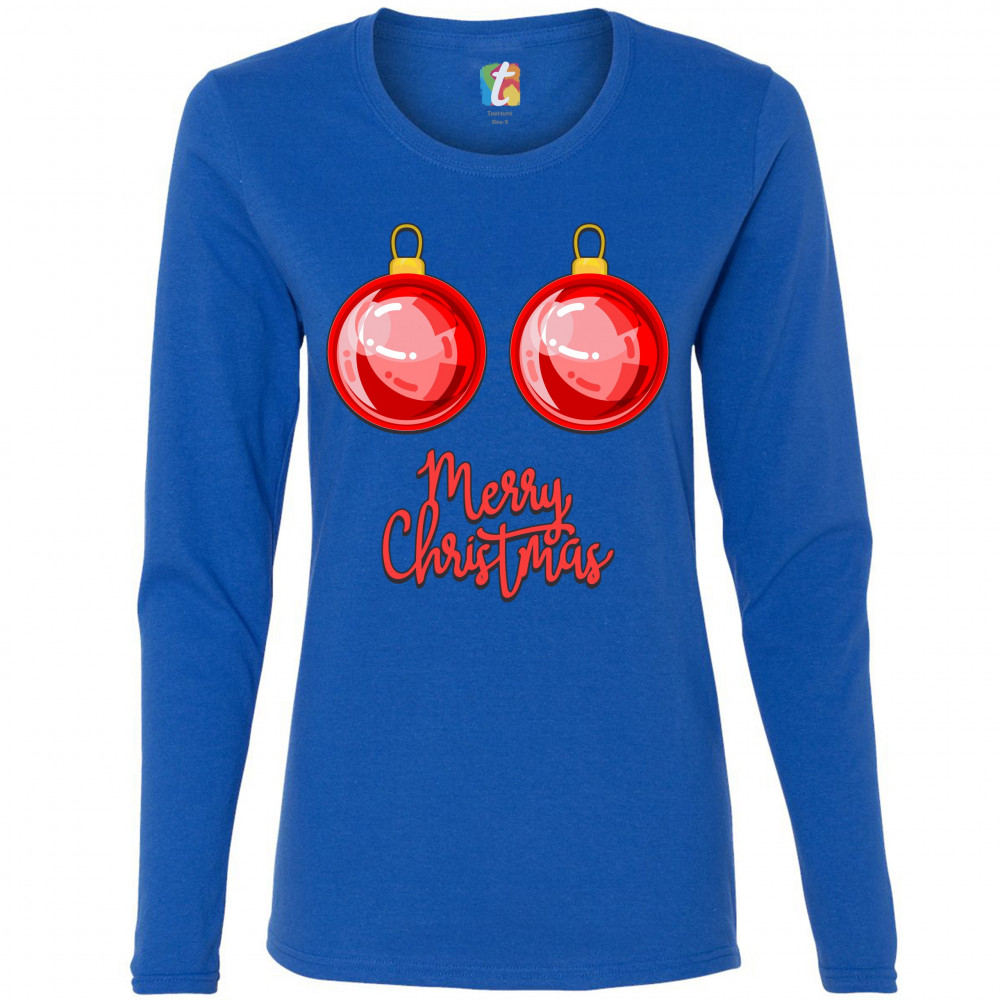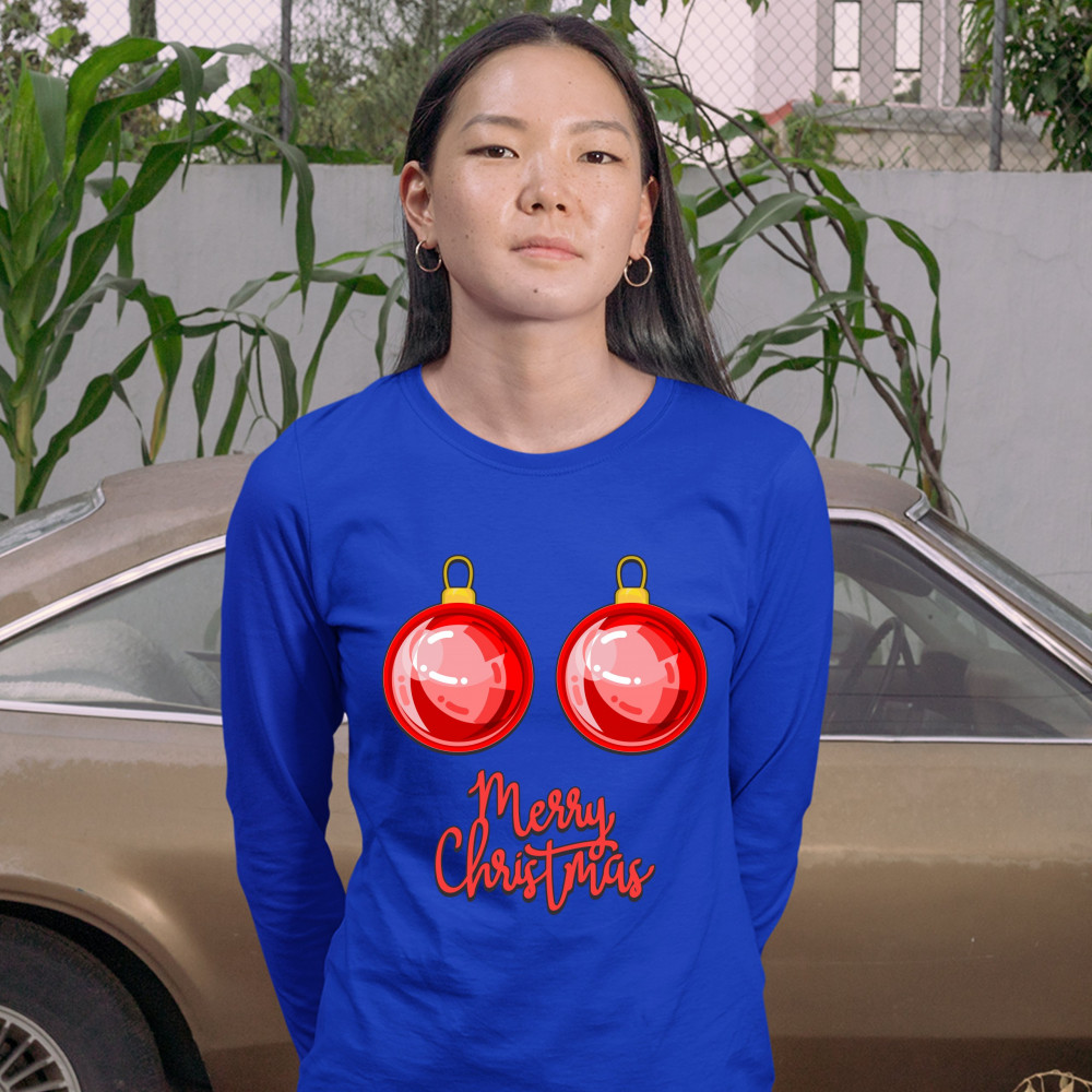 MERRY CHRISTMAS BOOBS women's long sleeve t-shirt naughty or nice funny tits royal blue
