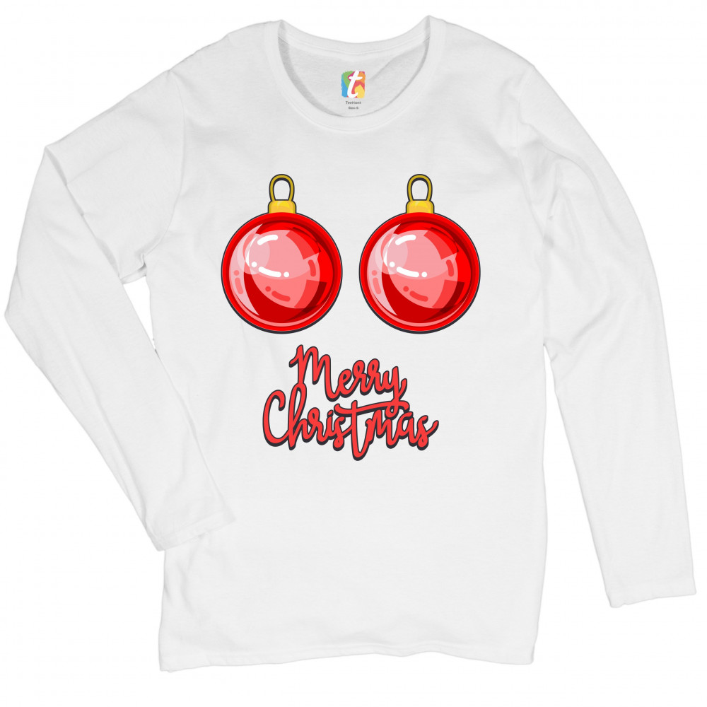 MERRY CHRISTMAS BOOBS women's long sleeve t-shirt naughty or nice funny tits white
