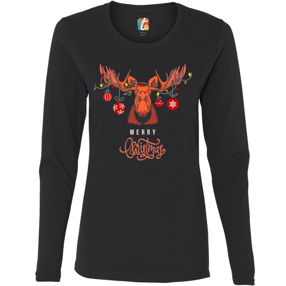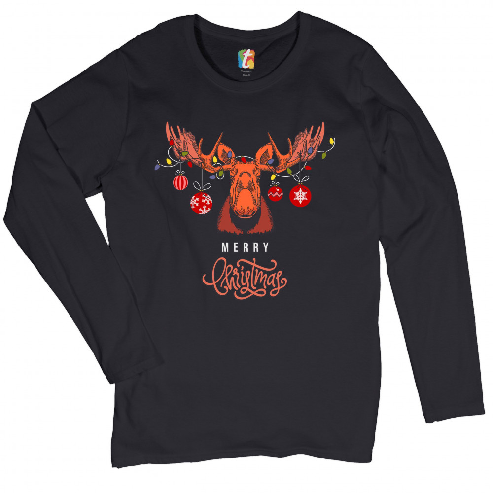 MERRY CHRISTMAS BUCK women's long sleeve t-shirt reindeer rudolph holiday black