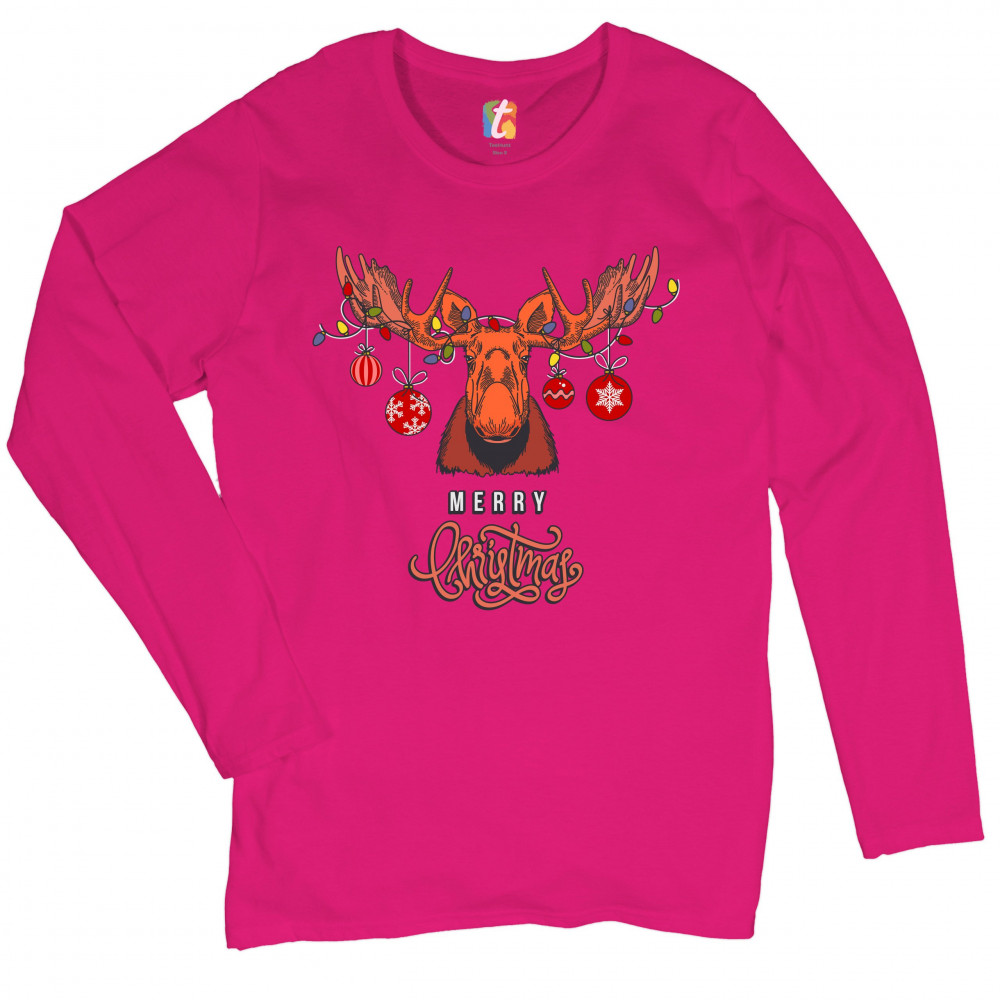 MERRY CHRISTMAS BUCK women's long sleeve t-shirt reindeer rudolph holiday pink