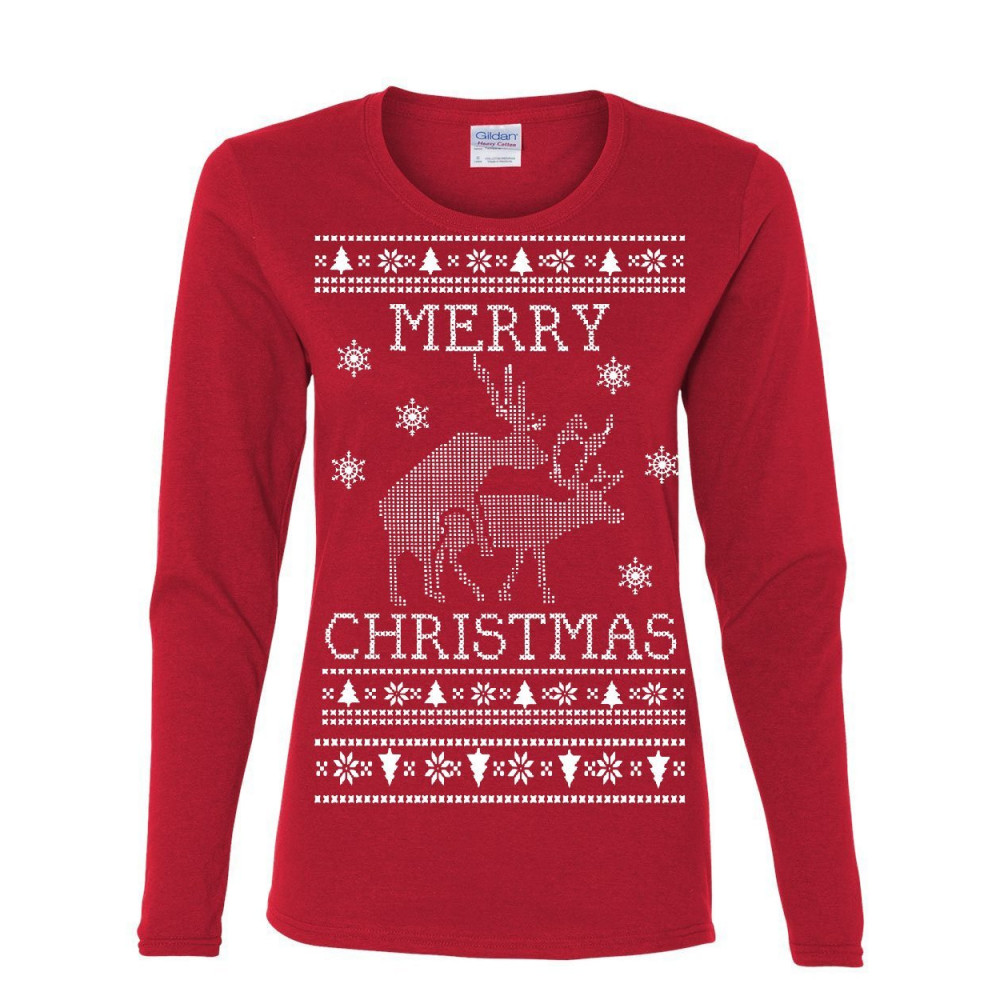 MERRY CHRISTMAS DEERS merry christmas women's long sleeve t-shirt deer humping ugly sweatshirt xmas red