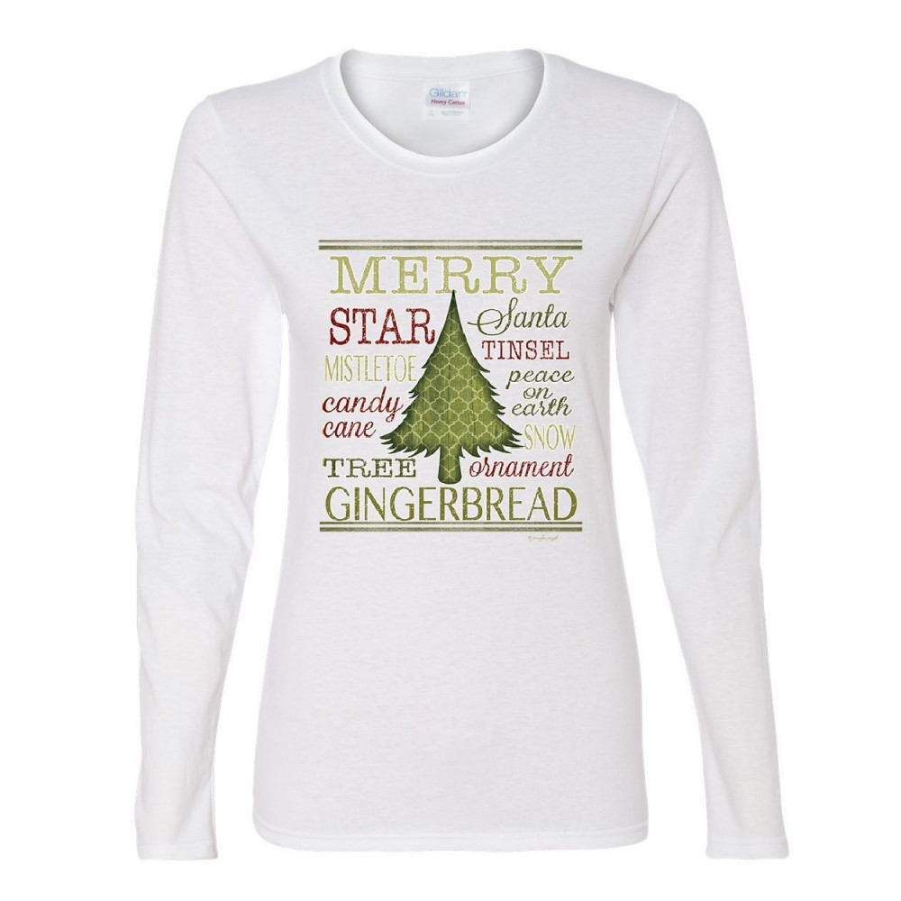 MERRY CHRISTMAS xmas tree women's long sleeve tee holiday spirit joy santa snow white