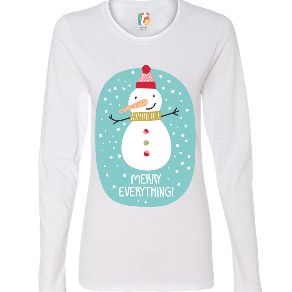 A print featuring a happy snowman with a carrot nose wearing a hat and a scarf smiling and spreading it's hands. It is snowing and below the snowman it says: "Merry Christmas". Amazing choice to make people smile and spread positive vibes on Christmas Eve