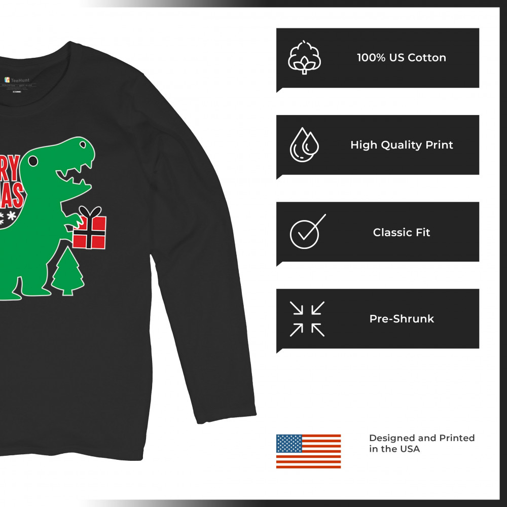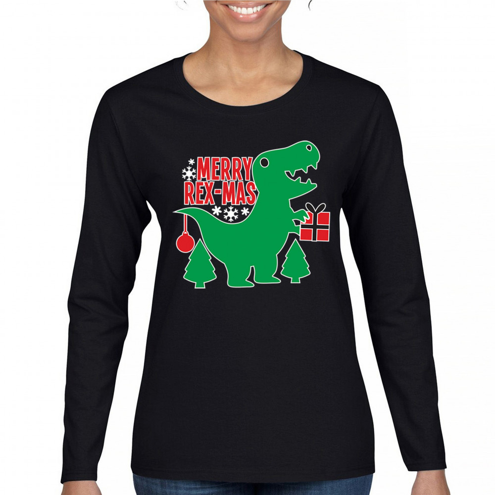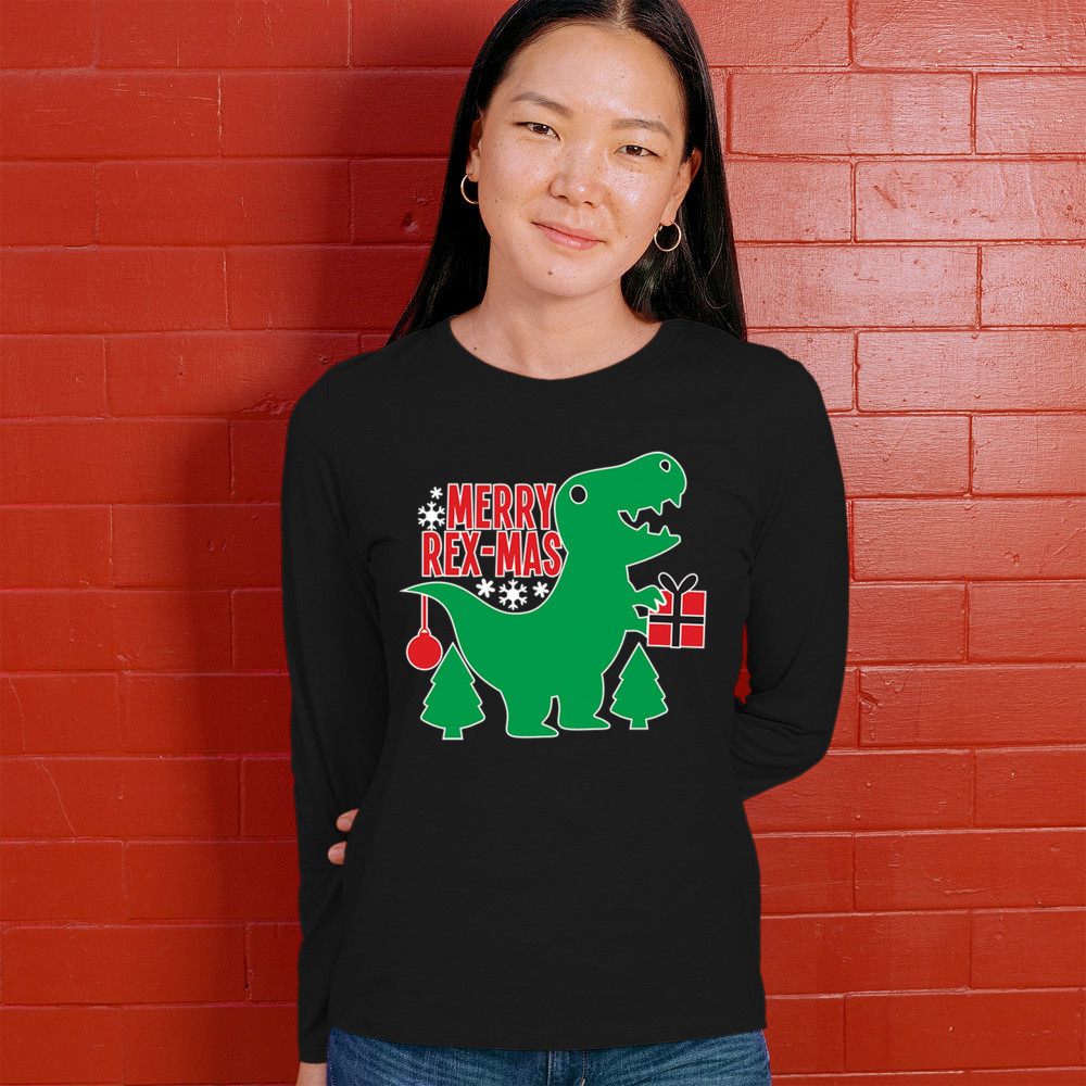 Merry Rex-Mas dinosaur Christmas design with a cute T-Rex, gift, and festive holiday details. Perfect for fun family celebrations and cheerful winter style.