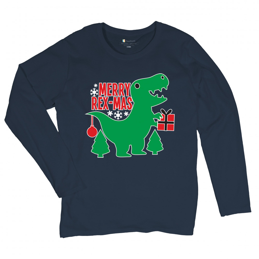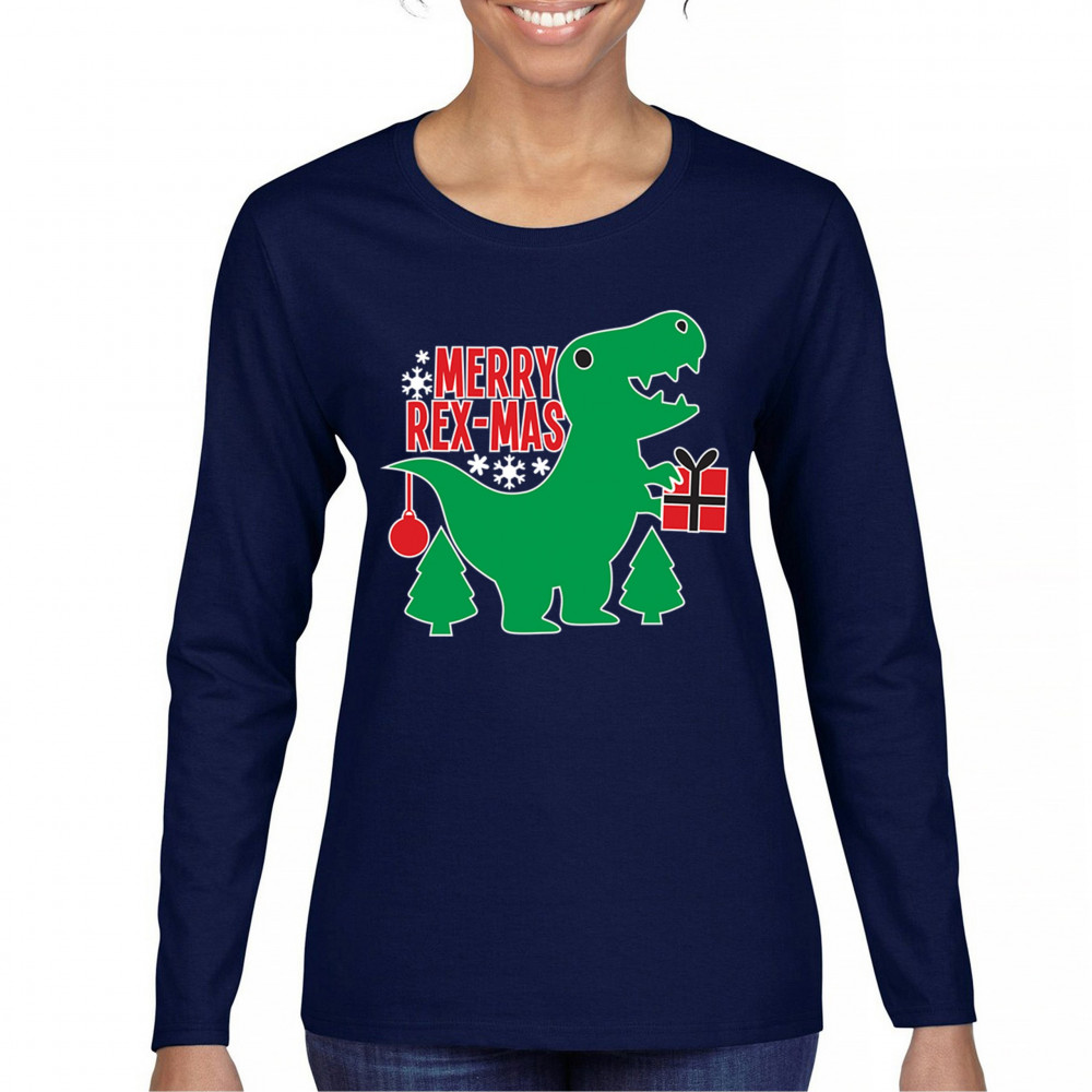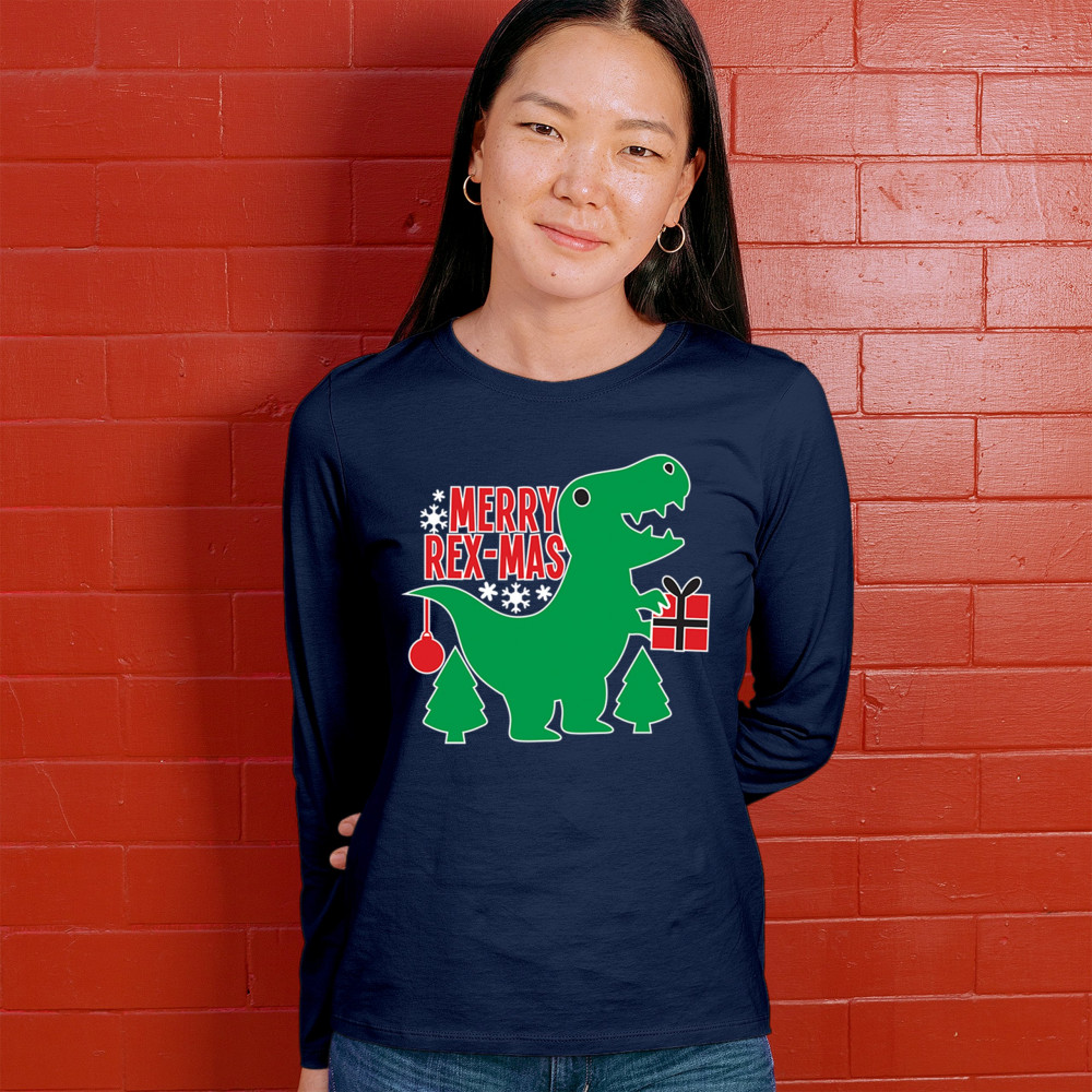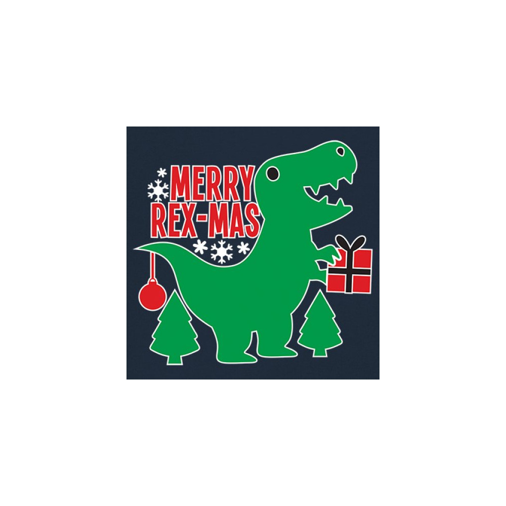 Merry Rex-Mas dinosaur Christmas design with a cute T-Rex, gift, and festive holiday details. Perfect for fun family celebrations and cheerful winter style.