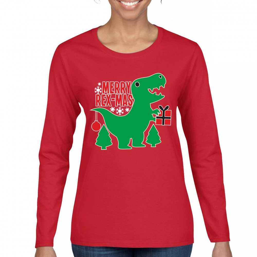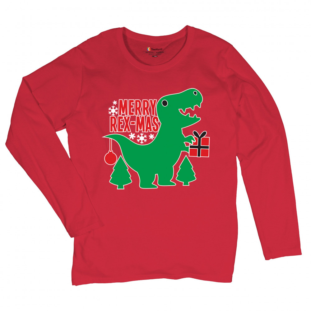 Merry Rex-Mas dinosaur Christmas design with a cute T-Rex, gift, and festive holiday details. Perfect for fun family celebrations and cheerful winter style.