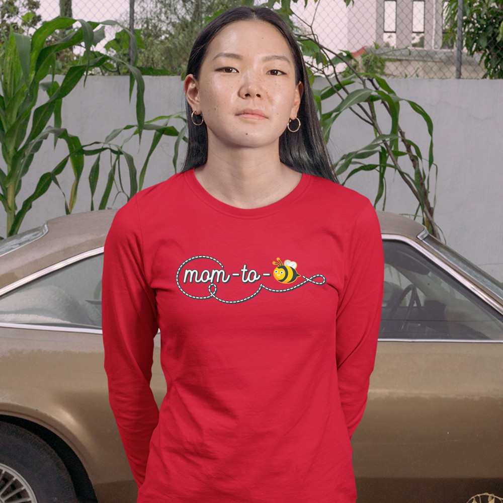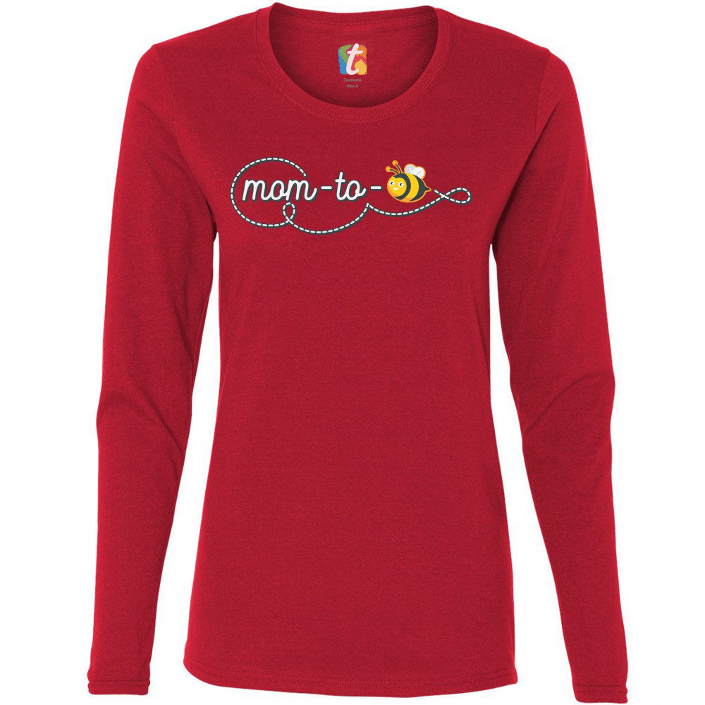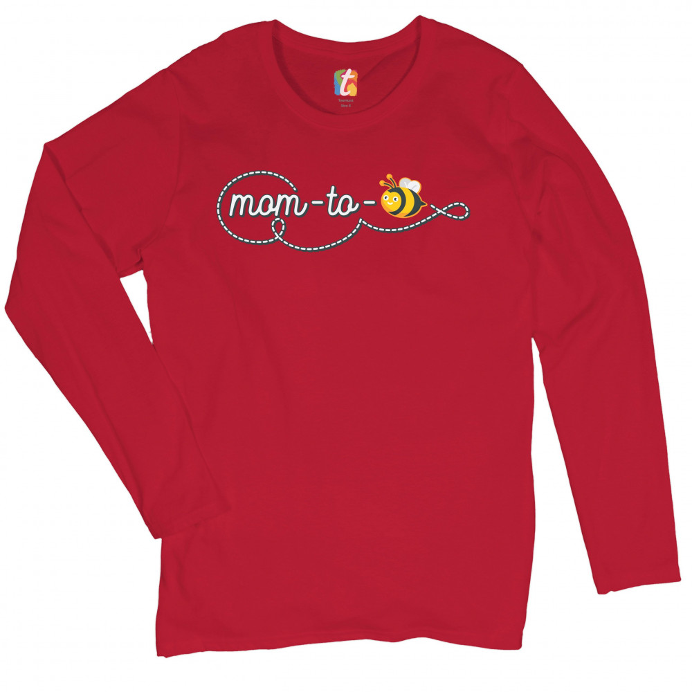 MOM TO BEE women's long sleeve t-shirt pregnancy announcement mother's day red