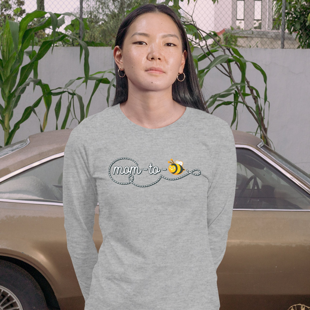 MOM TO BEE women's long sleeve t-shirt pregnancy announcement mother's day gray