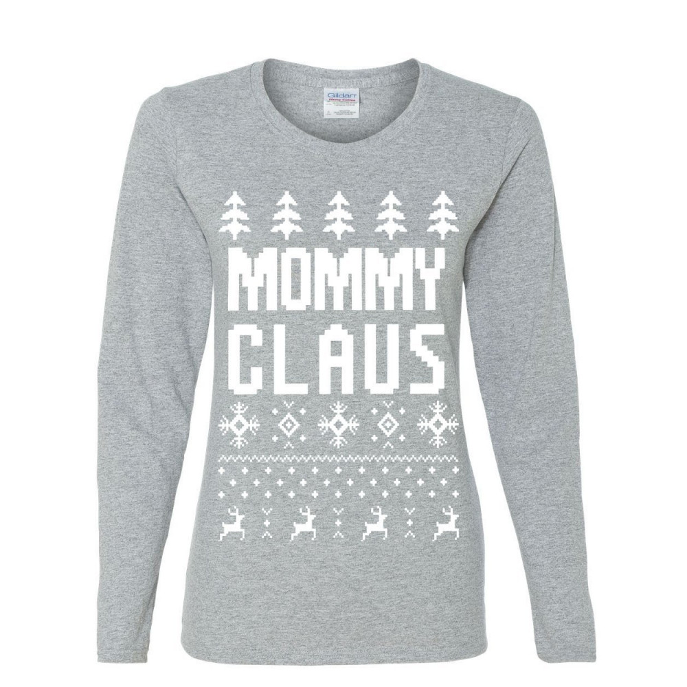 MOMMY CLAUS women's long sleeve tee funny ugly sweater santa christmas xmas gray