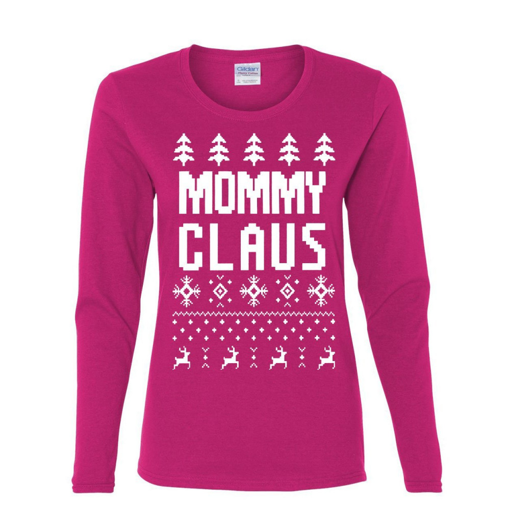 MOMMY CLAUS women's long sleeve tee funny ugly sweater santa christmas xmas pink