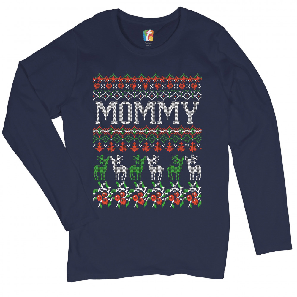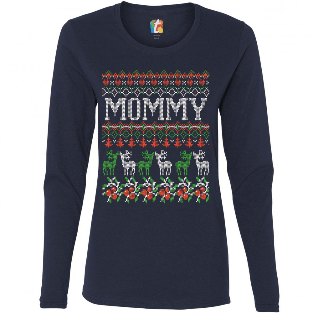 MOMMY women's long sleeve t-shirt ugly sweatshirt for mom christmas reindeer navy blue