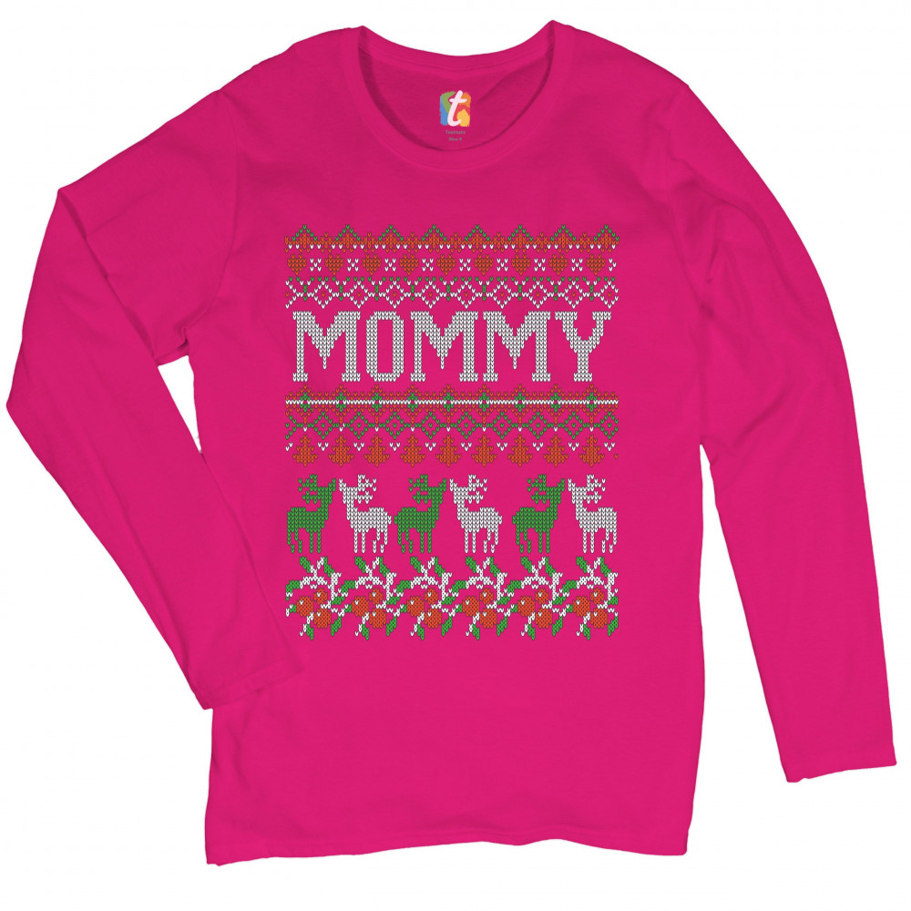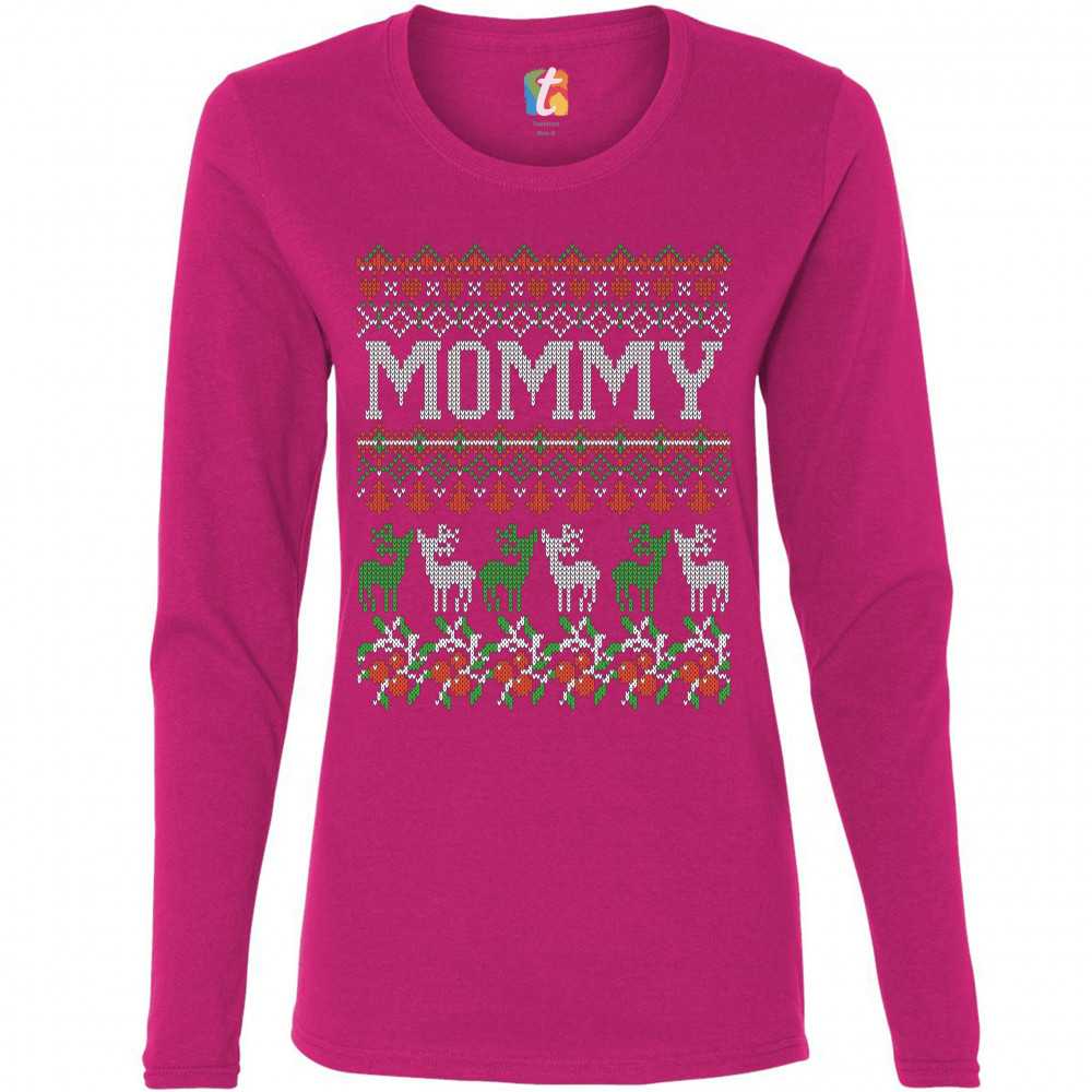 MOMMY women's long sleeve t-shirt ugly sweatshirt for mom christmas reindeer pink