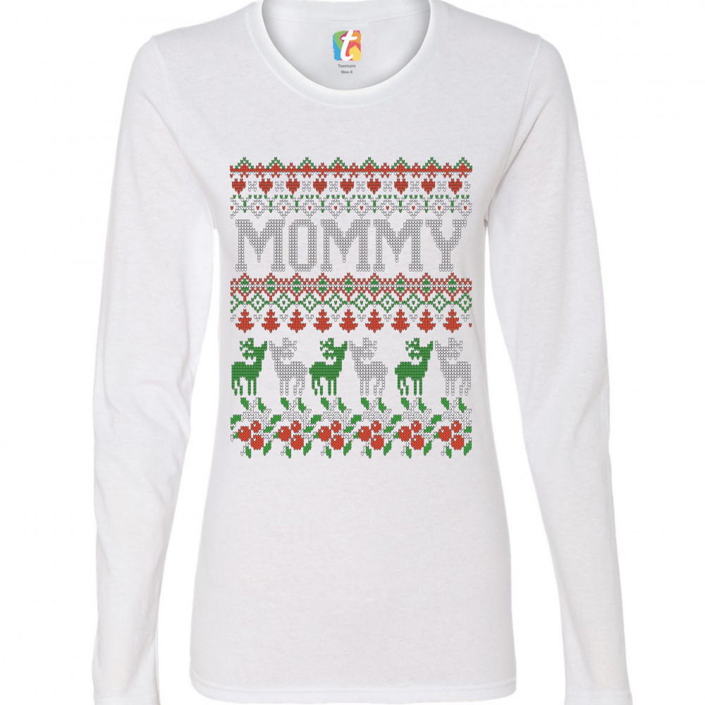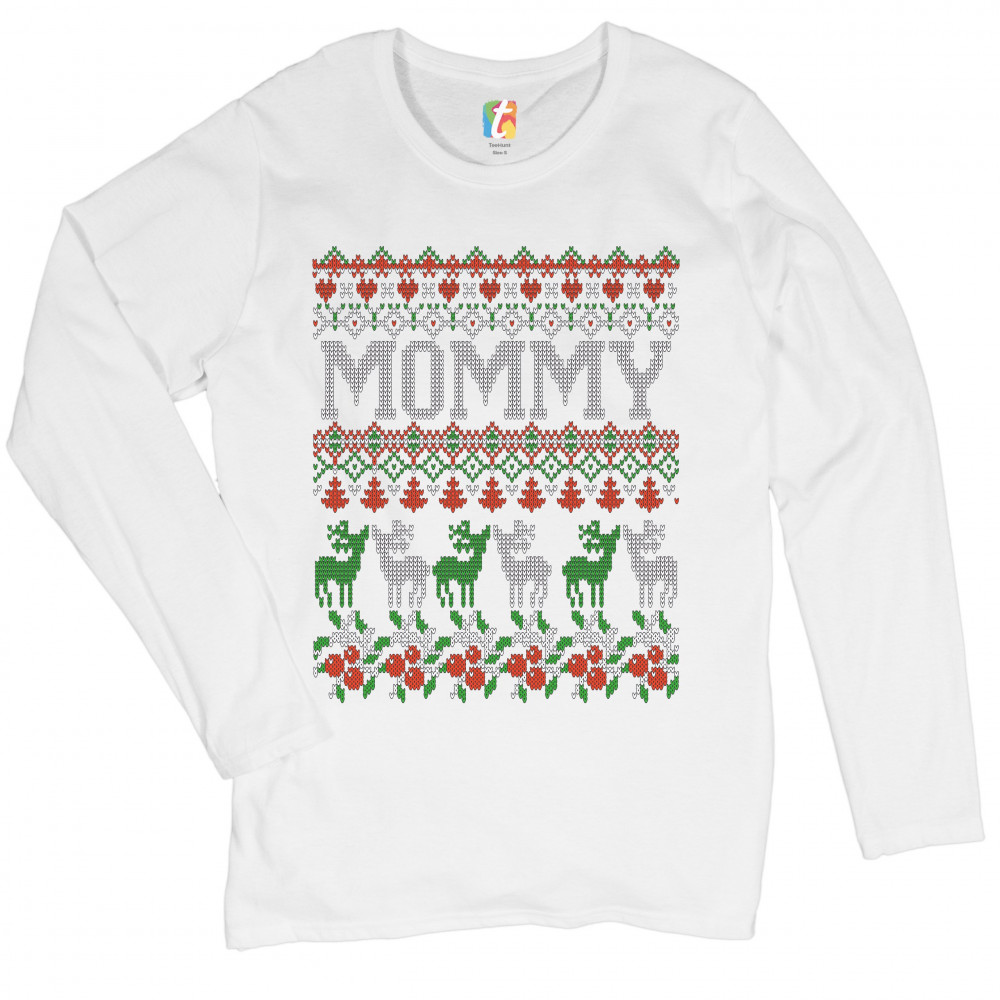 MOMMY women's long sleeve t-shirt ugly sweatshirt for mom christmas reindeer white