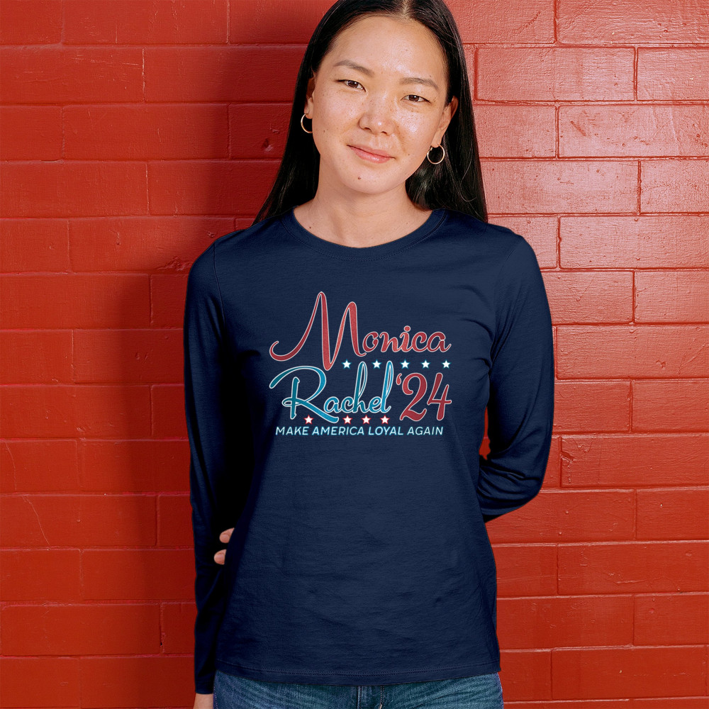 Get ready for the 2024 election with a humorous twist—Monica and Rachel '24! This fun design is perfect for "Friends" fans who love mixing pop culture with politics.