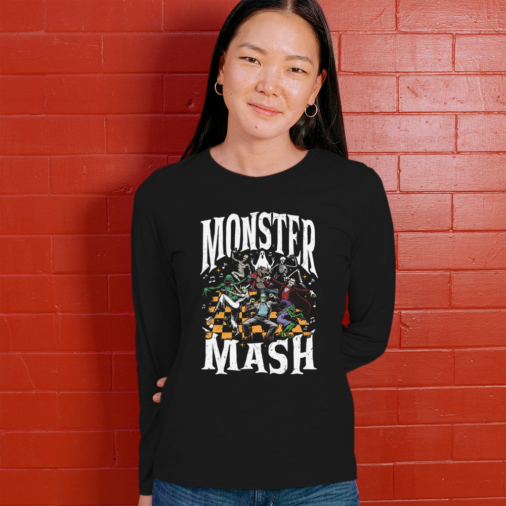 Step into the Halloween dance floor with this Monster Mash design showcasing pumpkin heads, creepy costumes, scary jack o lanterns, and candy bags. Perfect for October 31, Halloween night parties, haunted houses, and trick or treat fun, it combines playful spooky style with festive holiday charm.