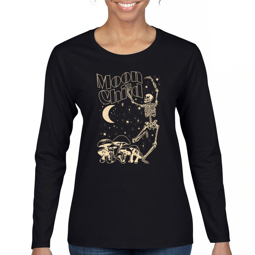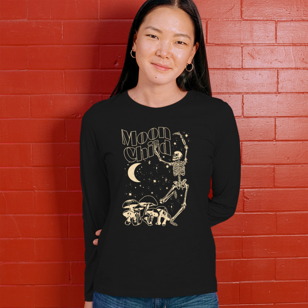 Mystical “Moon Child†design with skeleton, mushrooms, stars, and moon. Retro celestial vibes for dreamers, witches, and free spirits.