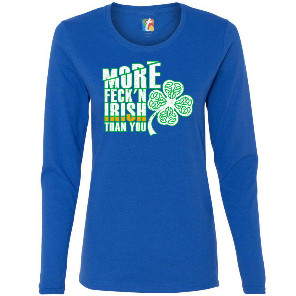 MORE FECK'N IRISH THAN YOU women's long sleeve t-shirt st. patrick's day shamrock royal blue