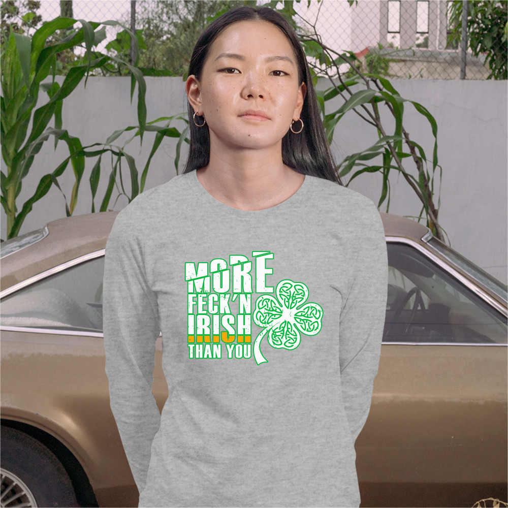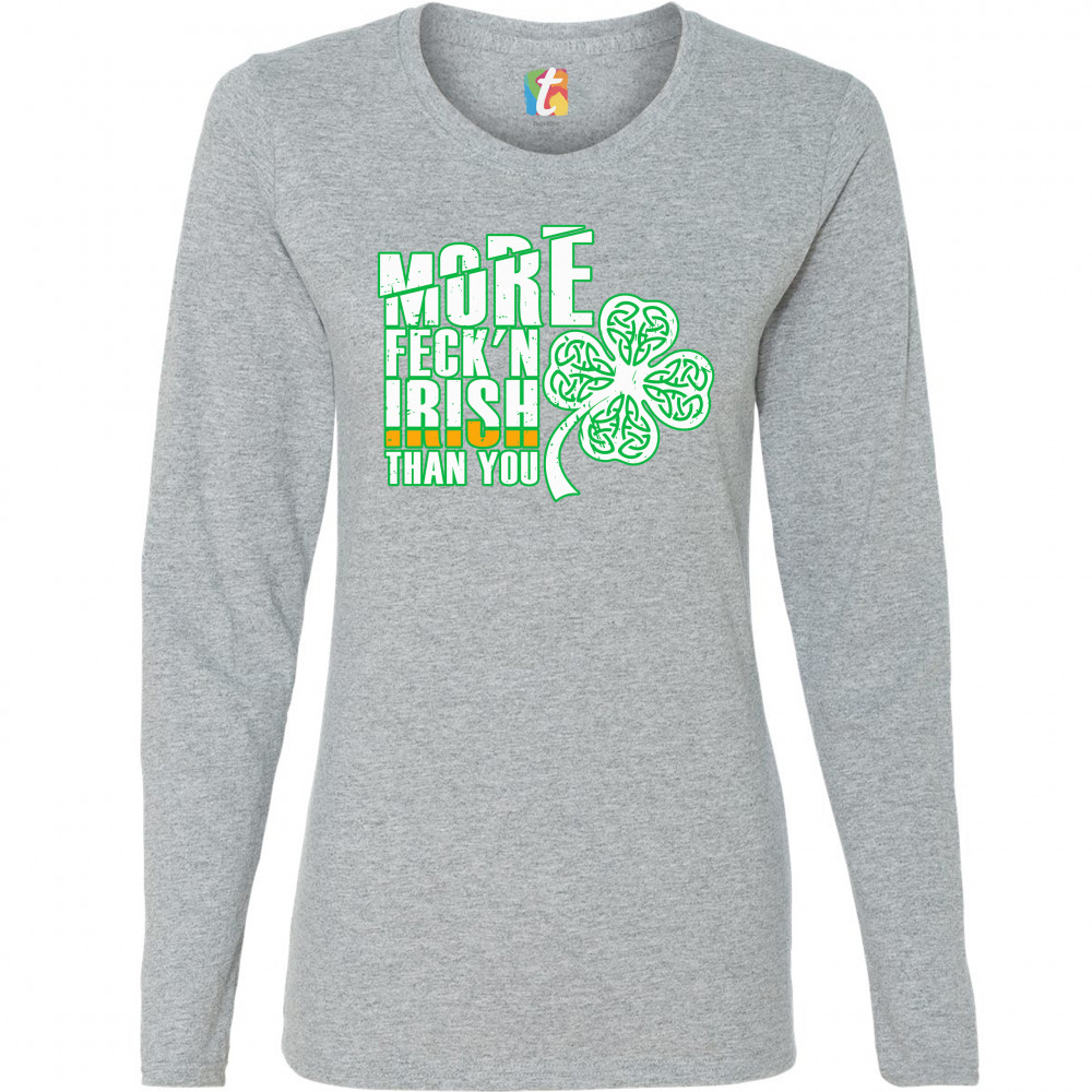MORE FECK'N IRISH THAN YOU women's long sleeve t-shirt st. patrick's day shamrock gray