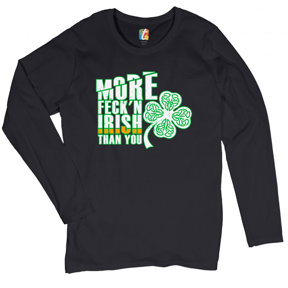 MORE FECK'N IRISH THAN YOU women's long sleeve t-shirt st. patrick's day shamrock black