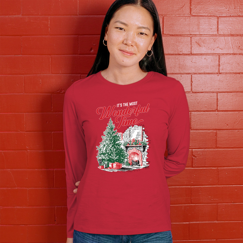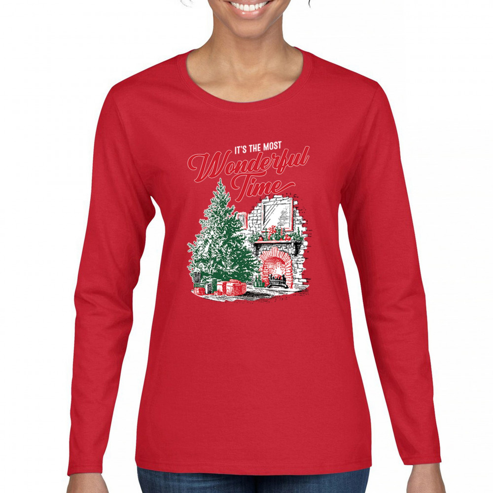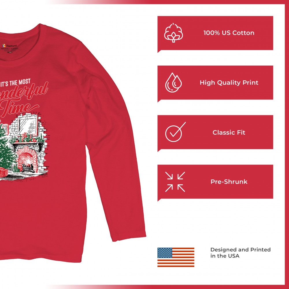 Make your holidays brighter with this “Most Wonderful Time†Christmas design, featuring a glowing fireplace, festive living room, and decorated Christmas tree. This cozy Christmas shirt combines holiday home decor style with classic Merry Xmas charm. Perfect for those who love Santa Claus, Rudolph, reindeer, Let It Snow vibes, and cheerful holiday fashion.