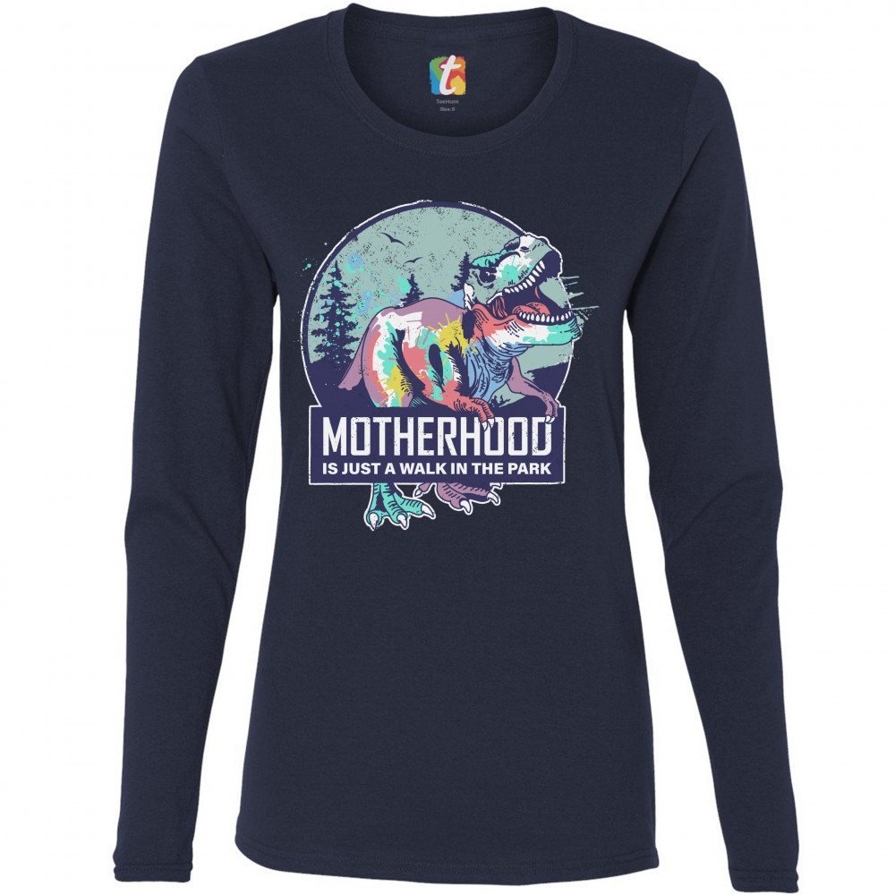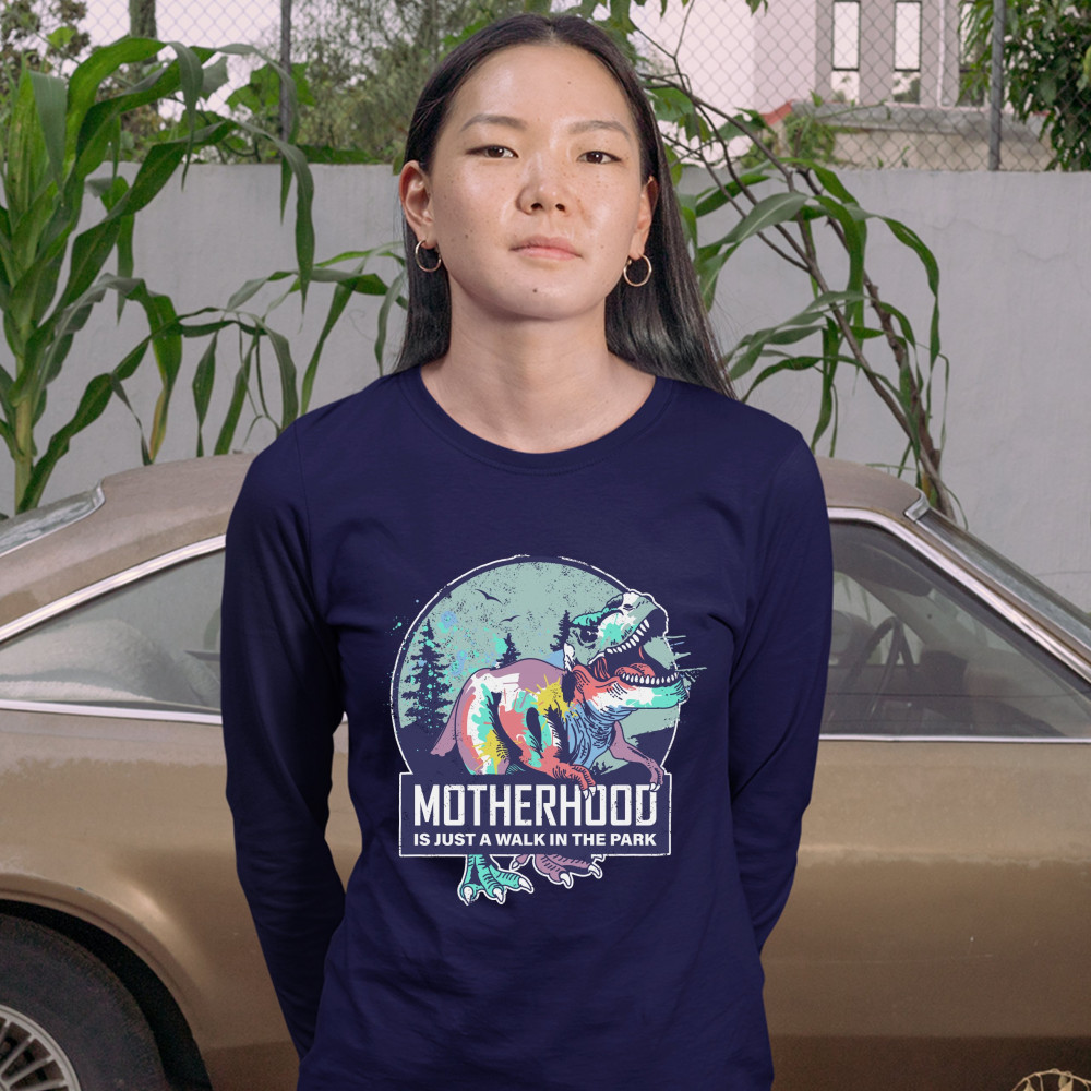 MOTHERHOOD IS JUST A WALK IN THE PARK women's long sleeve t-shirt mother's day navy blue